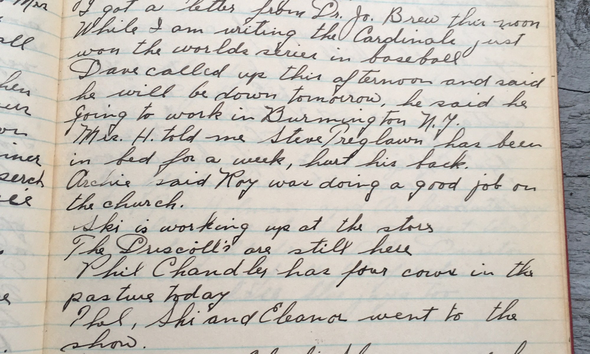 283rd day - 83 days follow Foggy and sticky weather today. Started to chop here but it was too hot so I put in the day working in the flower garden. Dug up the glads. I got a letter from Dr. Jo. Brew this noon. While I am writing, the Cardinals just won the world …