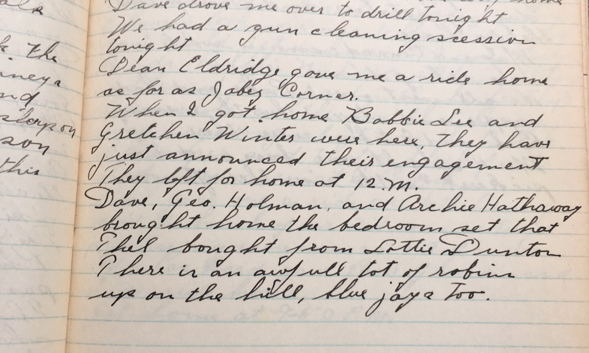 285th day - 81 days follow Worked all day in the grove. Dave and Dot went up to see Symingtons demolished pines thi afternoon and they picked me up on the hill on the way home. Dave drove me over to drill tonight. We had a gun cleaning session tonight. Dean Eldgridge gave me a …