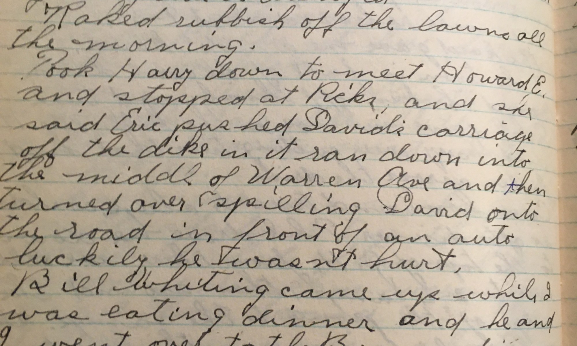 263rd day - 103 days follow Nurse Mowed and cleaned up rubbish all day. Mr. Gilbert was up to look at the trellis and barn doors. When I came home tonight Thel had agreed to go over to Picks and take care of the kids while they went out. When we got over there, I …