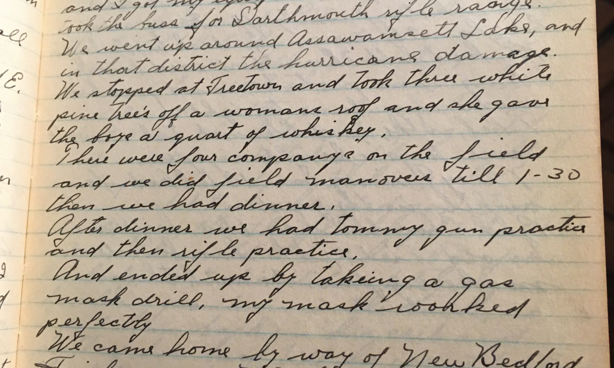 261st day - 105 days follow Maneuvers Went up on the hill early and did the chores. Thel got me over to the Armory about 7-45 AM and I got my equipment and the company took the bus for Dartmouth rifle range. Wen went up around Assawansett Lake and in that district the hurricane damage. …