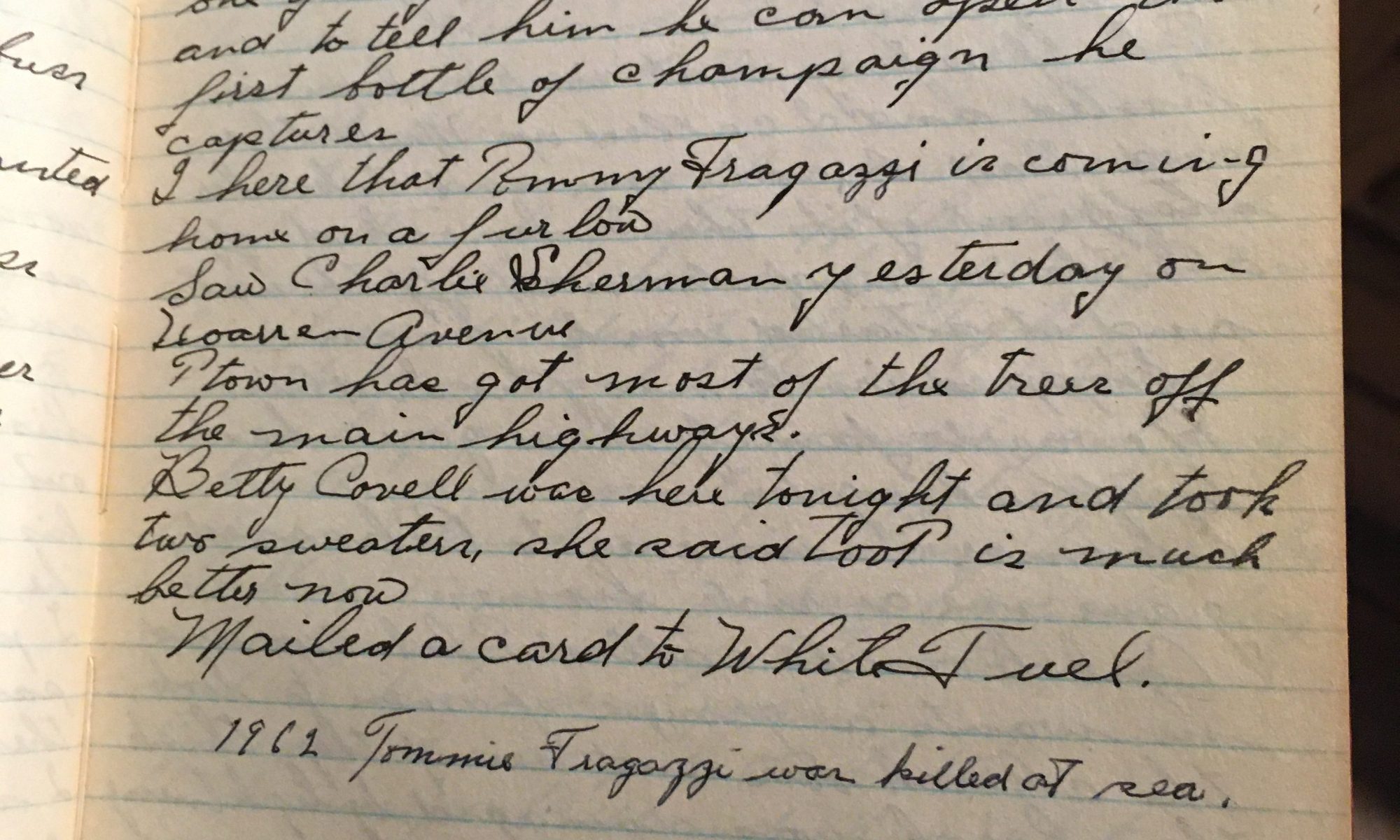 265th day - 101 days follow Raked and mowed all day. Heard that Chet Downey is still here. Eleanor has just put up some Xmas boxes to send to George, I gave her one of my knives to send to him and to tell him he can open the first bottle of champaign he captures. …