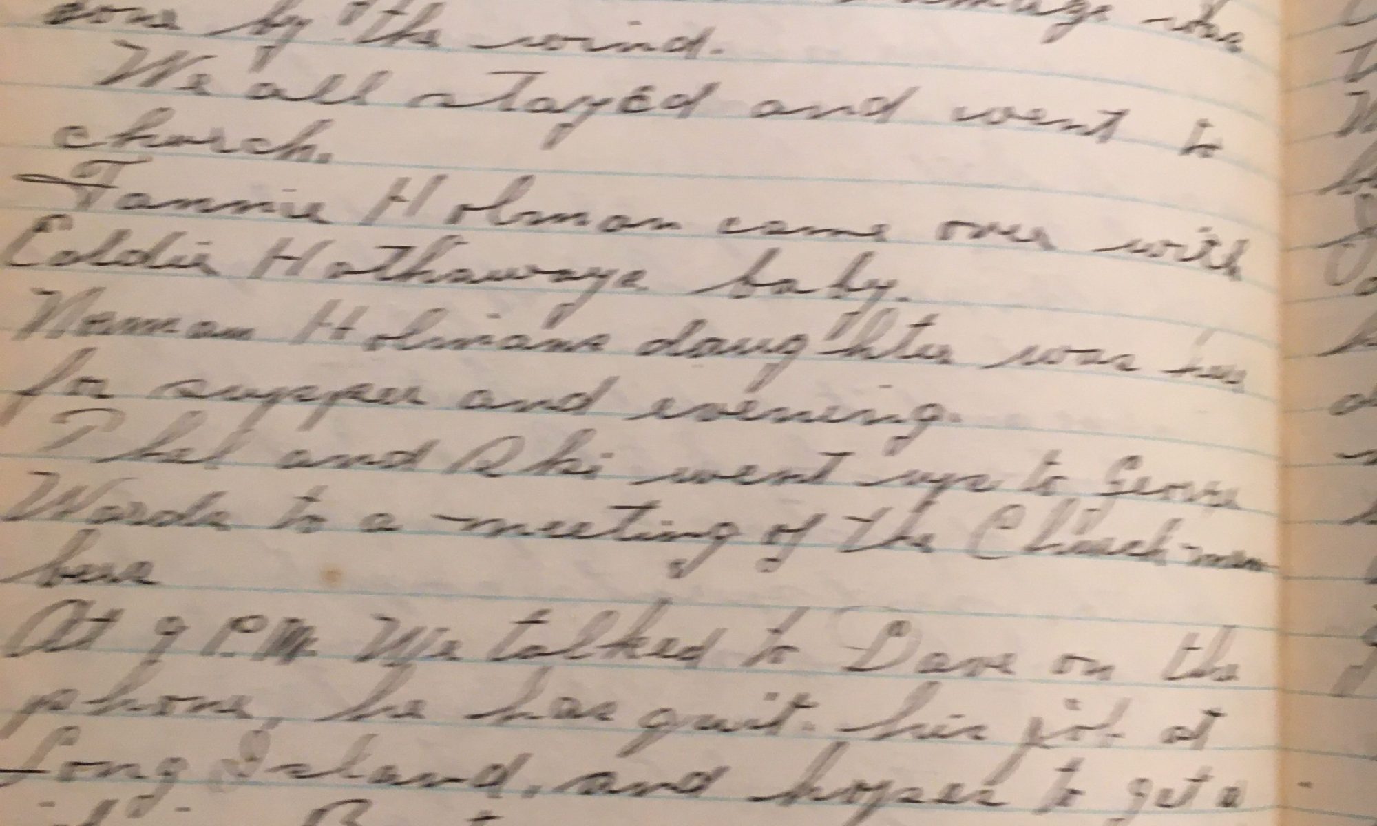 268th day - 98 days follow This morning Bill Ward, Rusty Rounds, Archie, myself and the women went up to the church to look at the blow out hole in the back of the building. Personally, I think the damage was done by the wind. We all stayed and went to church. Fannie Holman came …