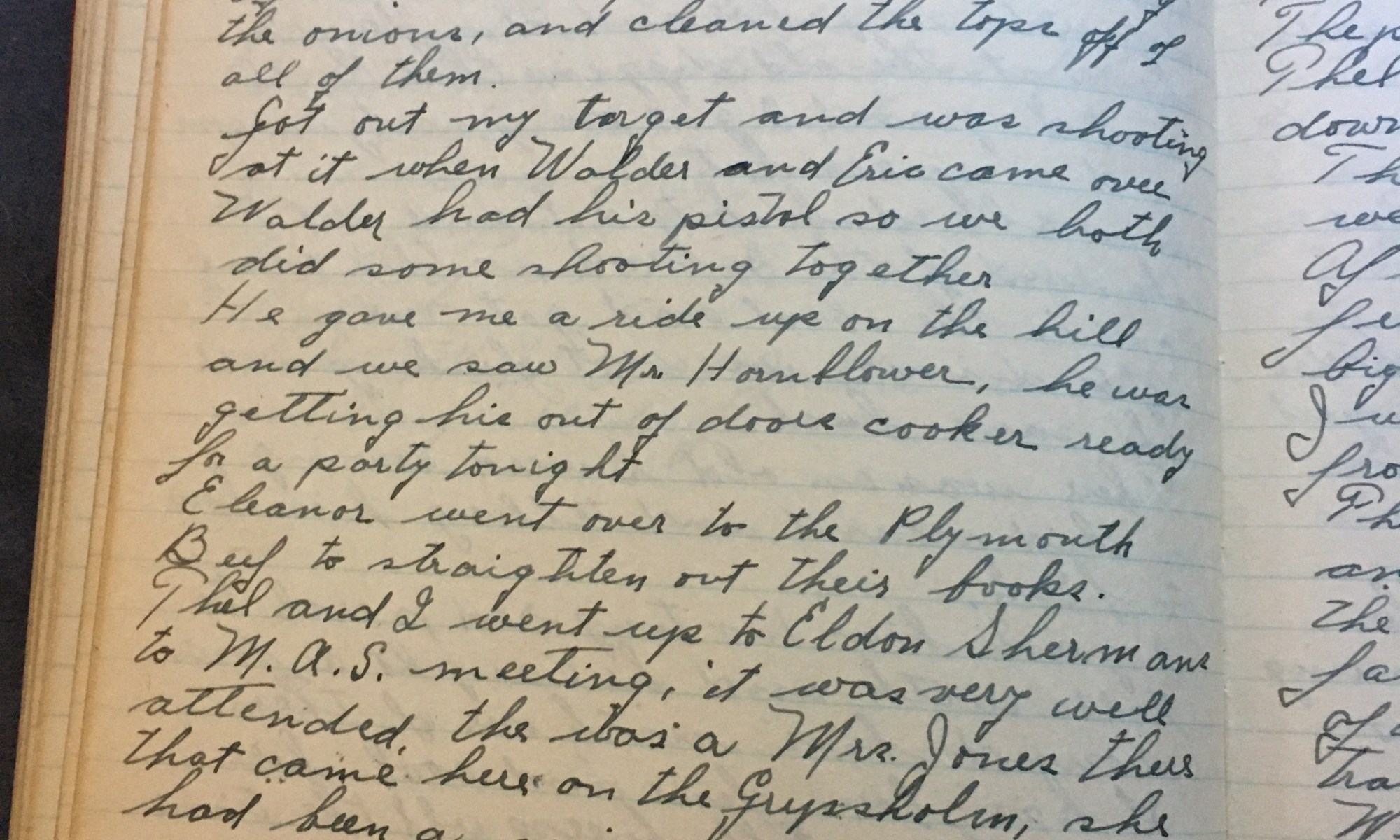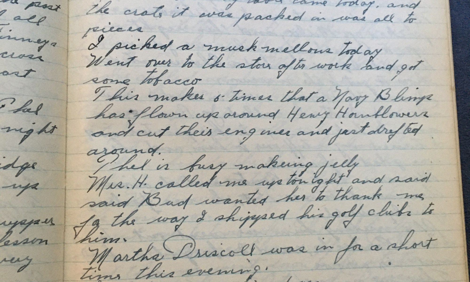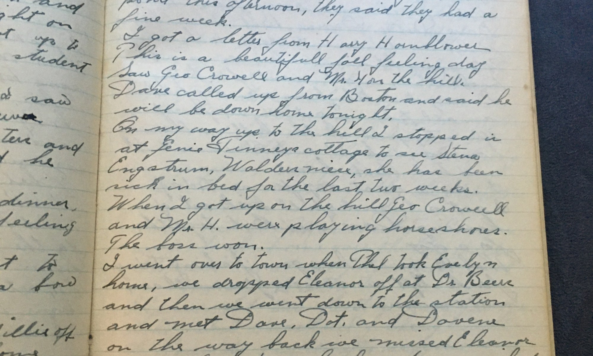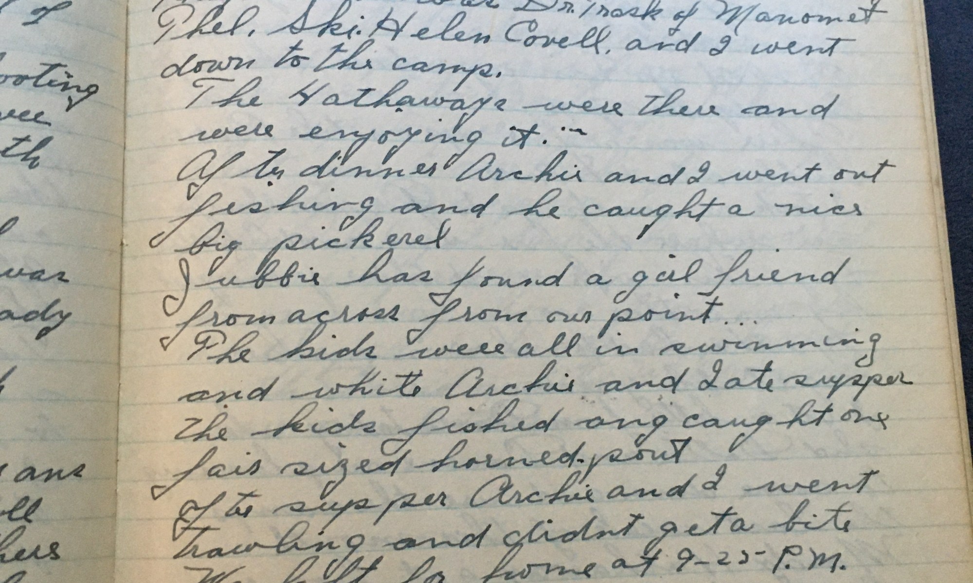 234th day - 132 days follow Went up on the hill and saw Mrs. H, she said she was going to call up Thel and making beach plum jam. Thel and I went to church this morning. The preacher was Dr. Trask of Manomet. THel, Ski, Helen Covell, and I went down to camp. The …