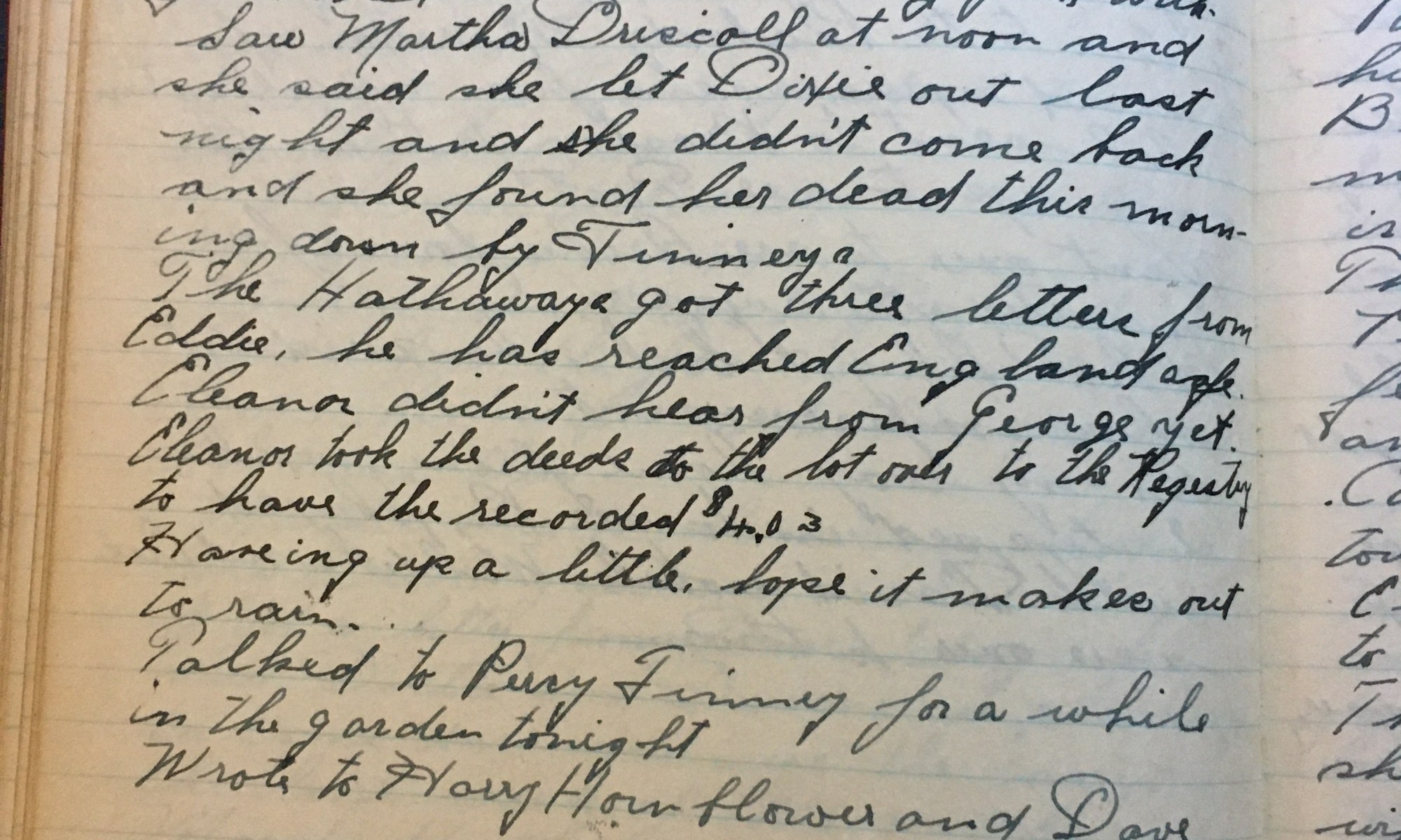 232nd day - 134 days follow Fair Put top dressing on the green up by the house and on the bowling green. Brought down some beach plums sugar and tumblers from the hill for Thel to make some jam with. Saw Martha Driscoll at noon and she said she let Dixie out last night and …