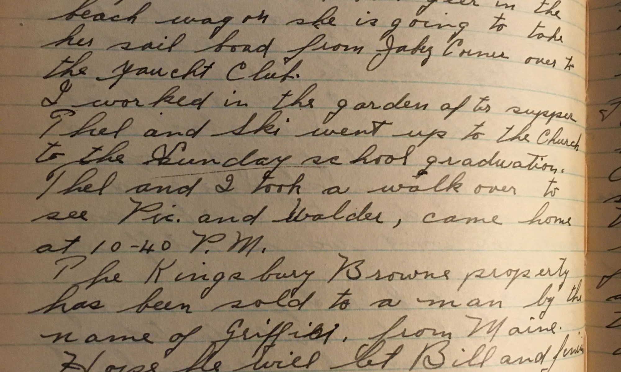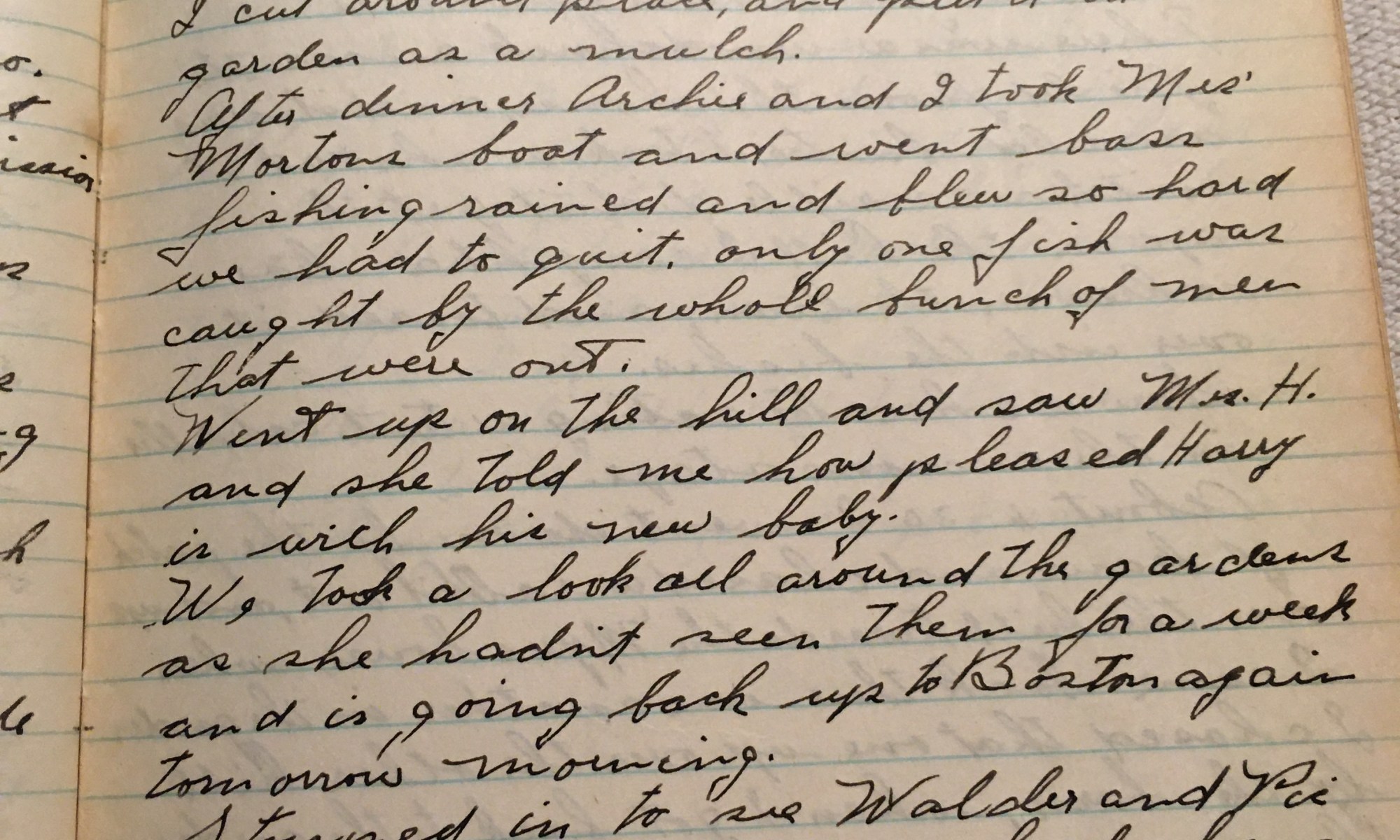 175th day – 191 days follow 80 Fair Not so hot today, much better air not so muggy. Mowed lawns and watered. Mrs. Hornblower, Mary, and Martha came back from Boston this afternoon. We put her sailboat gear in the beach wagon, she is going to take her sailboat from Jabez Corner over to the …
