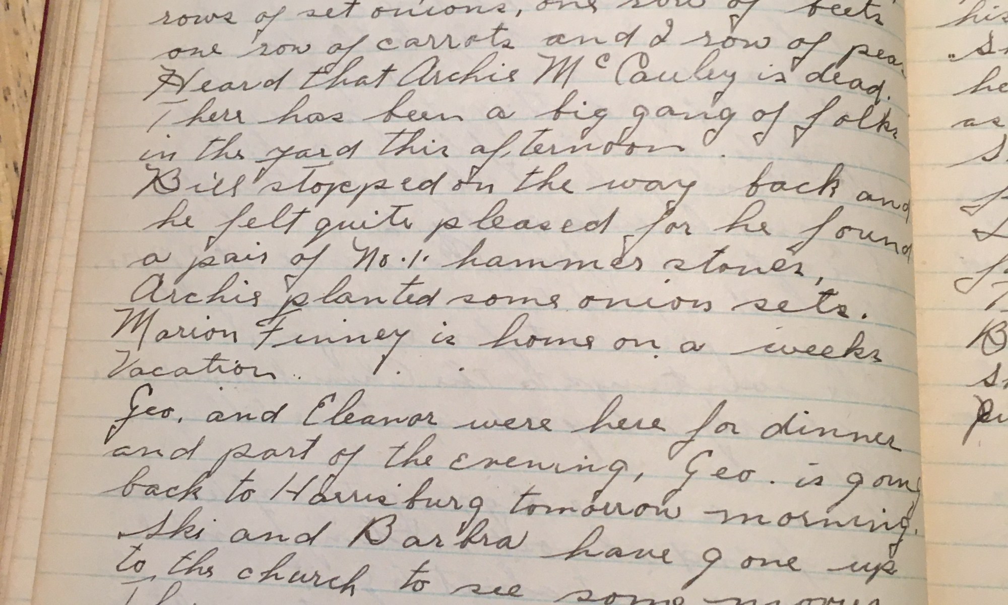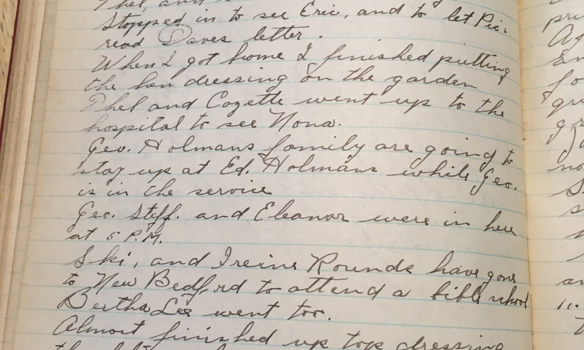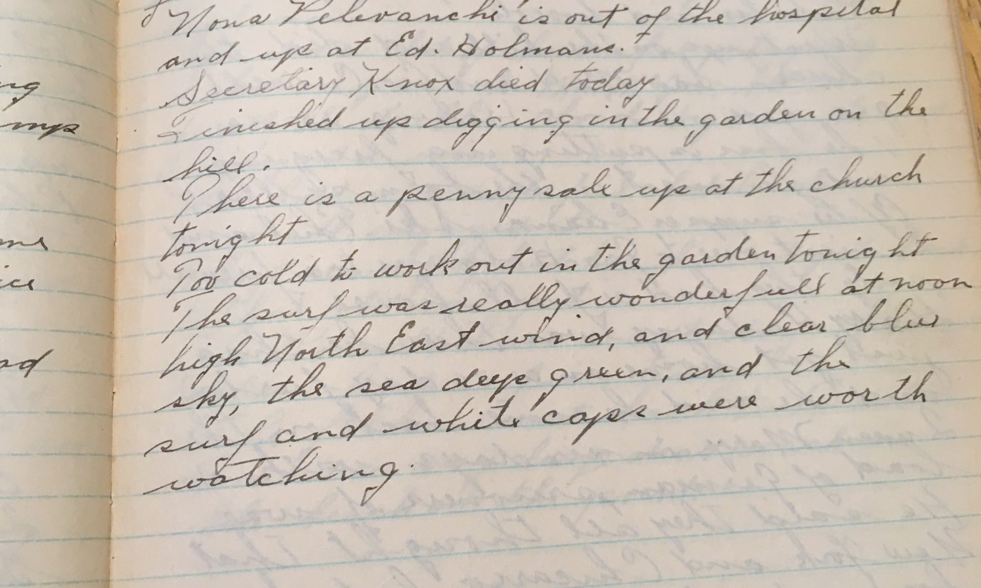 119th day – 247 days follow 40 Fair Cleaned up the house and finished mowing the lawn. Tom Doten came up with some vegetables. They are having a farewell party for Geo Holman Sat night. Nona Pelvanchi is out of the hospital and up at Ed Holmans. Secretary Knox died today. Finished up digging in …