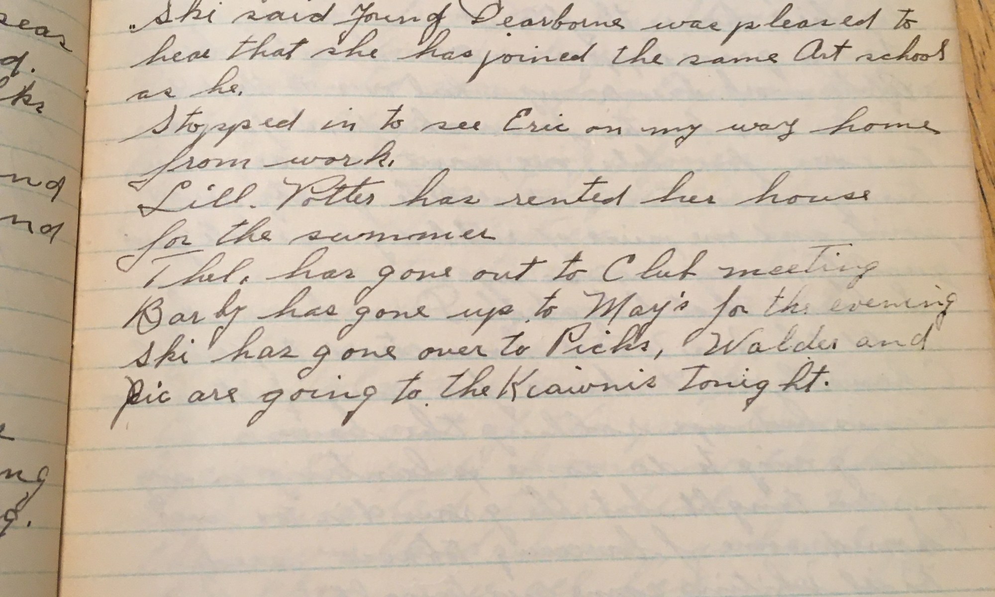 115th day – 251 days follow 40 Rain Spread fertilizer on the lawns. Ernest brought me up 10 gallons of oil for my termite mixture. Got a letter from Mr. Barden with the applications of Roddie Sherman and his wife. Ski said Joseph Dearborn was pleased to hear that she joined the same art school …