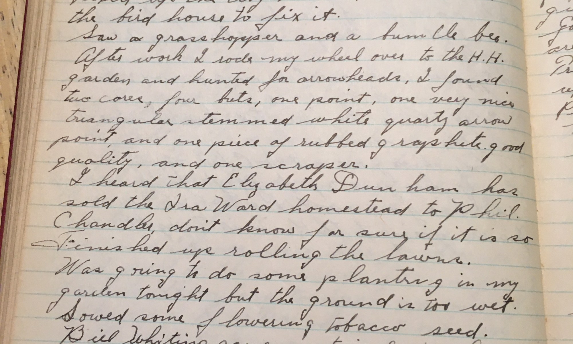 116th day – 250 days follow 55 Fair Turned the water on in the flower gardens and in the farm. Put in the termite poison and some wire to keep rats out. Picked some nice pink mayflowers. Fixed up the dog kennel and took down the bird house to fix it. Saw a grasshopper and …
