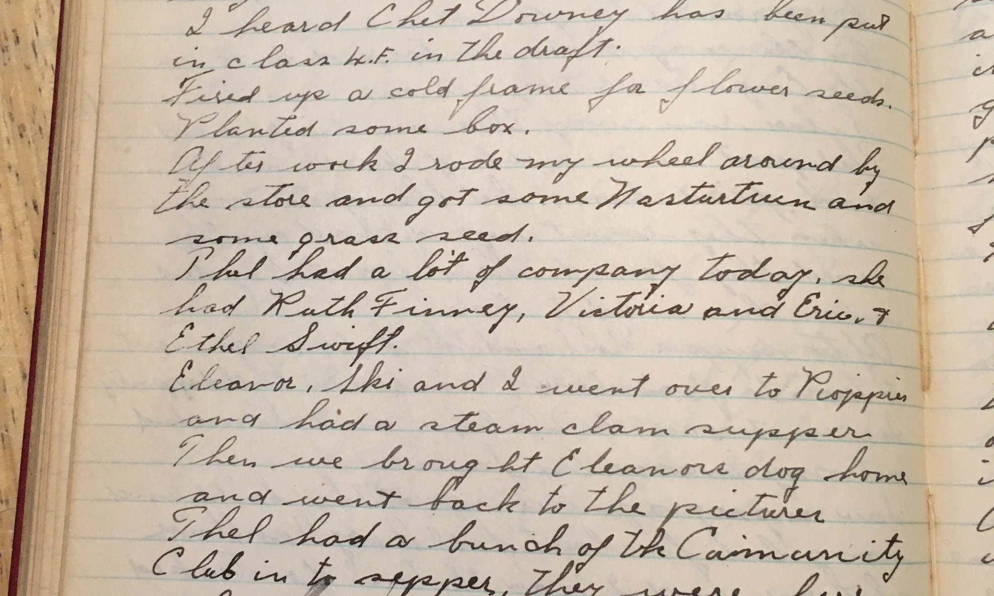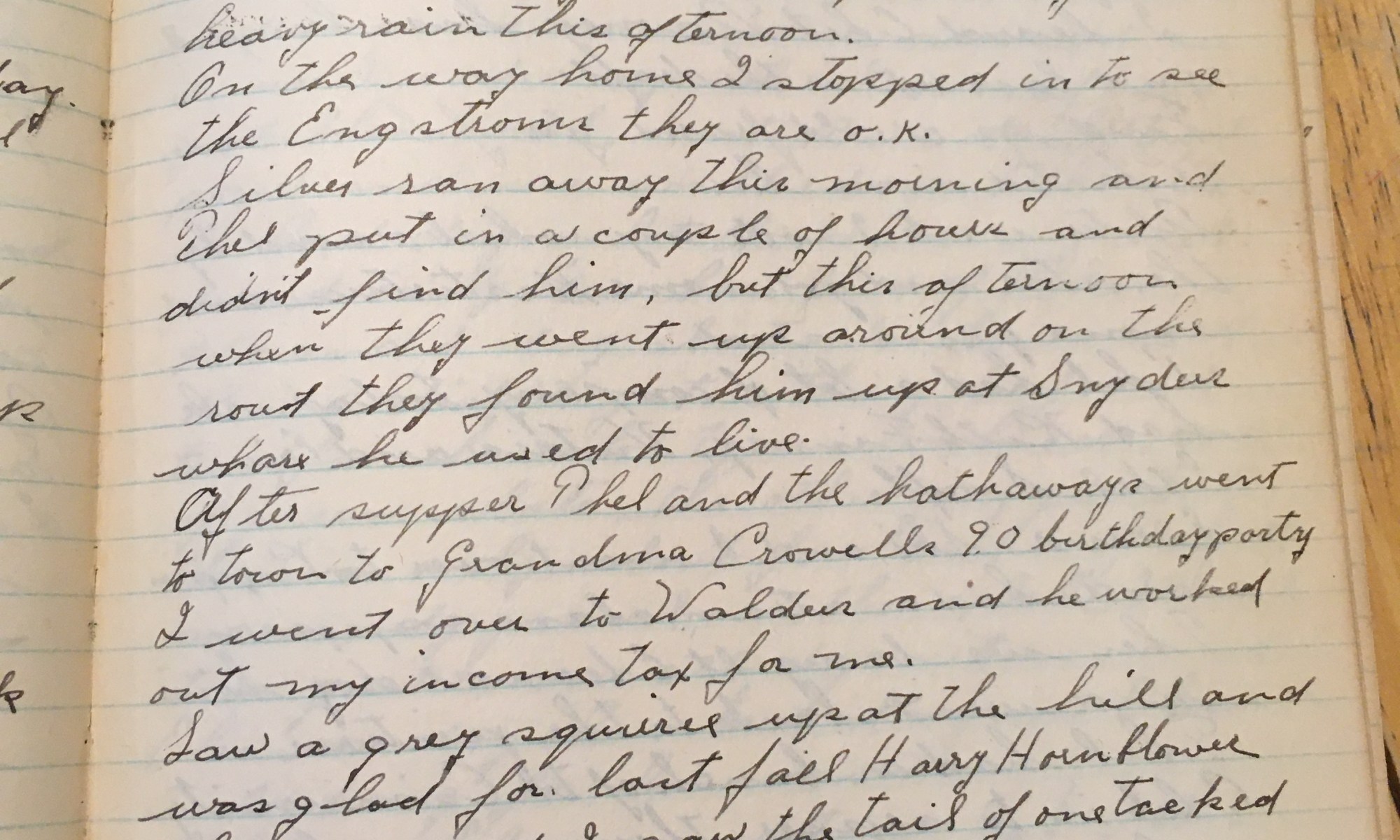 102nd day – 264 days follow 42 Rain Susan Crowell age 90 Cleaned up rubbish this morning, went over and saw Treglown, he said he was paying the help over $30.00 a week. Cleaned up my workshop during the heavy rain this afternoon. On the way home I stopped in to see the Engstroms, they …