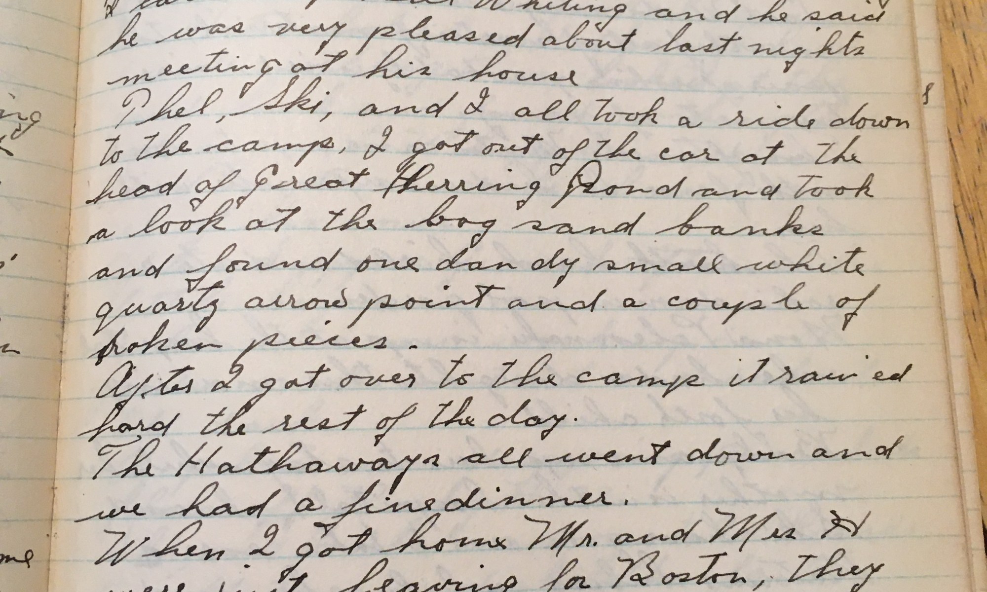 107th day – 259 days follow Arrowheads Went up on the hill this morning and rode my wheel over to H.H. and found one good arrowhead, and one fair large scraper. Geo and Eleanor were here this morning. I called up Bill Whiting and he said he was very pleased about last night’s meeting at …