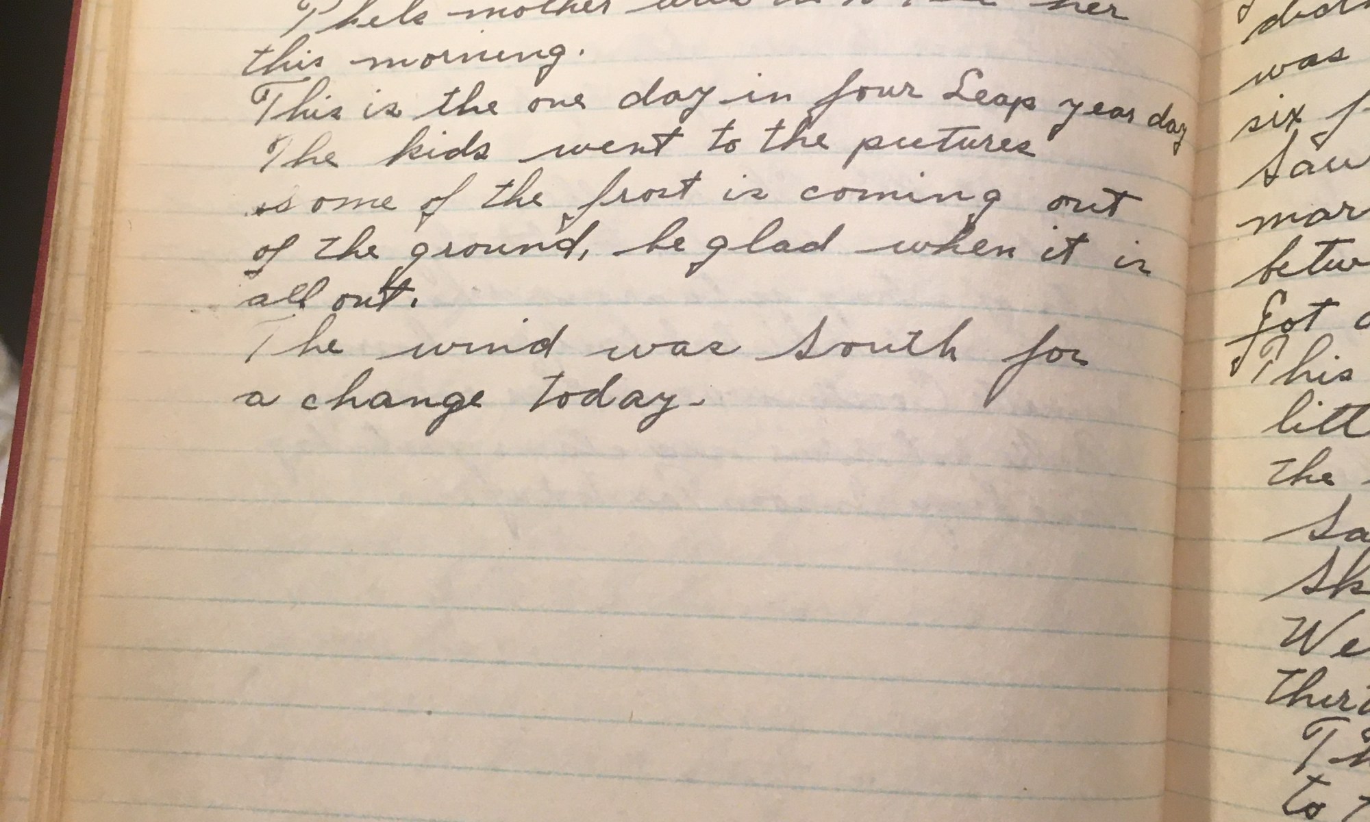 60th day – 306 days follow 35 Cloudy Raked up rubbish, stopped in to see Eric on the way home at noon, didn’t see him as Pic had just put him to bed. Thel’s mother was in to see her this morning. This is the one day in four Leap year day. The kids went …