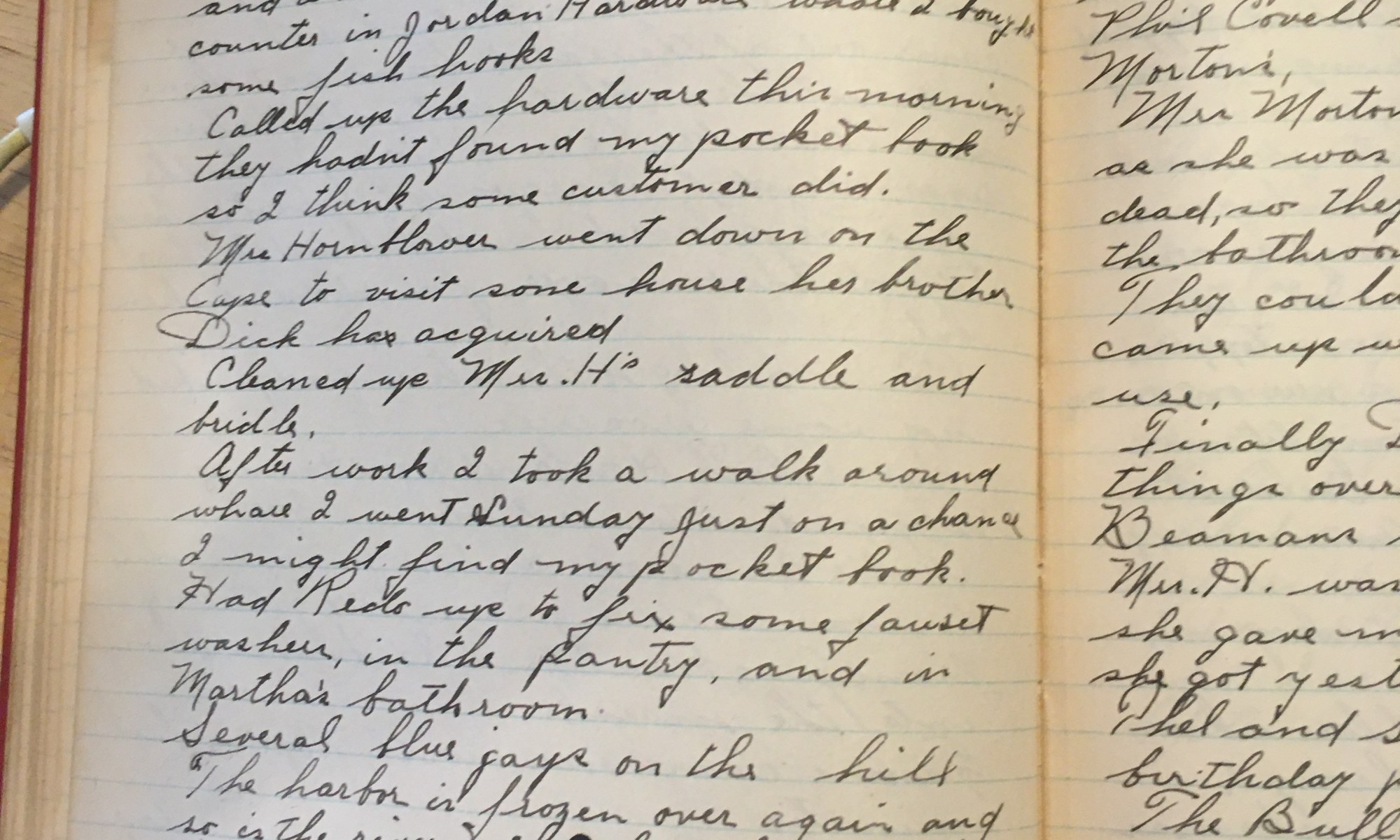 64th day – 302 days follow 12 Fair Lost pocketbook When I went to bed last night I missed my change pocket book and I remembered leaving it on the counter in Jordan Hardware where I bought some fish hooks. Called up the hardware this morning, they hadn’t found my pocket book so I think …