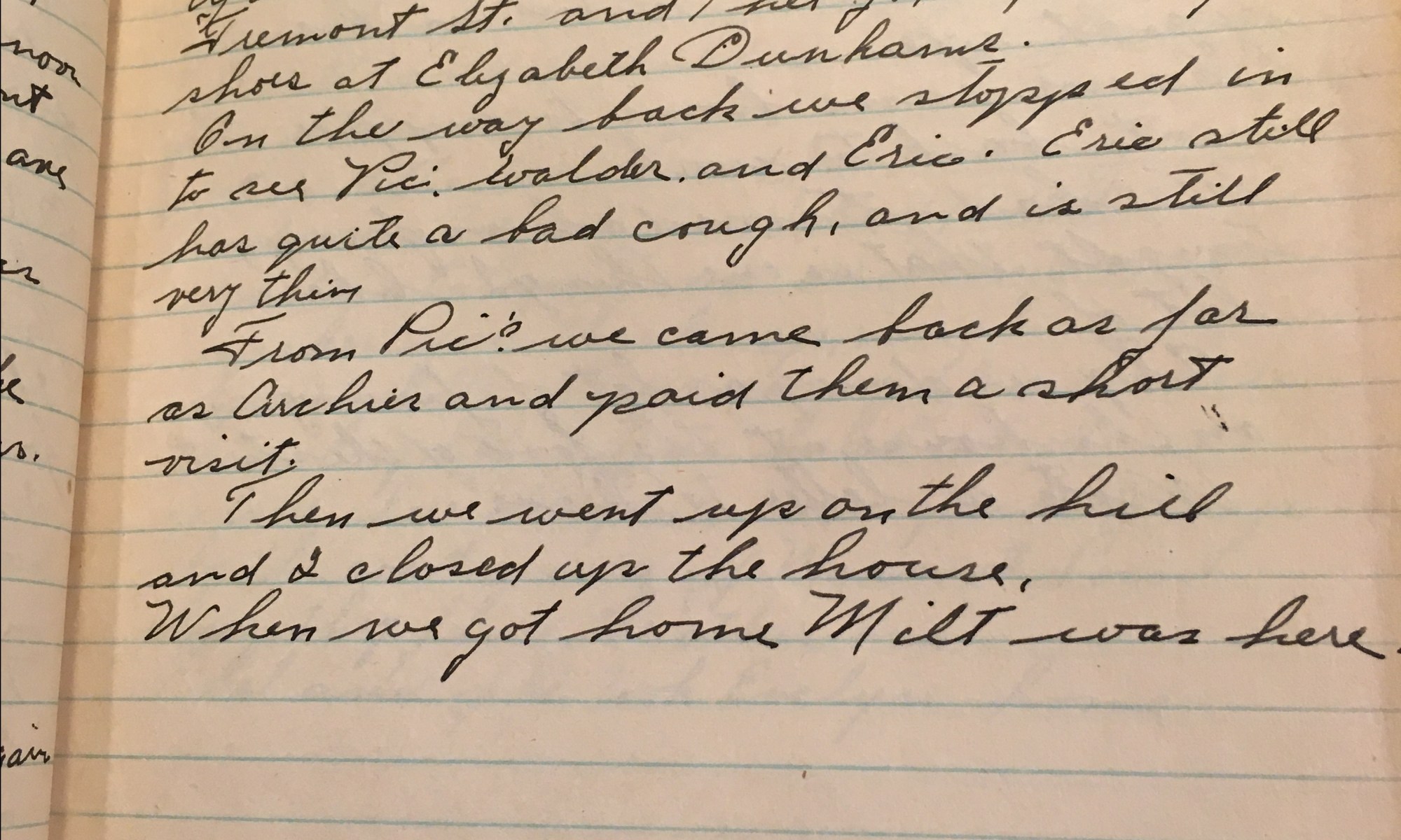 21st day – 345 days follow 36 Fair Foggy this morning, cleared fair and warm, W. So. When I came home from work, I stopped in to see Eric, Walder. Walder was just going to take Eric for a ride so I and Jack went with the for a ride up Clifford Road as far …