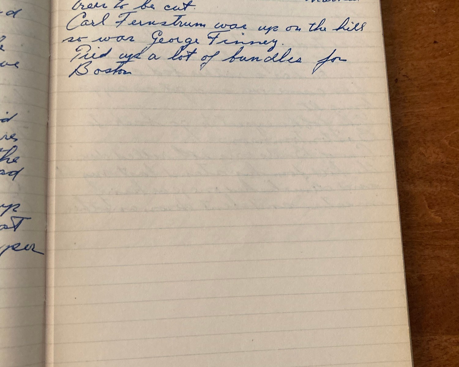 333rd day- 32 days follow Rain + Warm Trimmed shrubs and marked trees to be cut. Carl Fernstrum was up on the hill, so was George Finney. Tied up a lot of bundles for Boston.