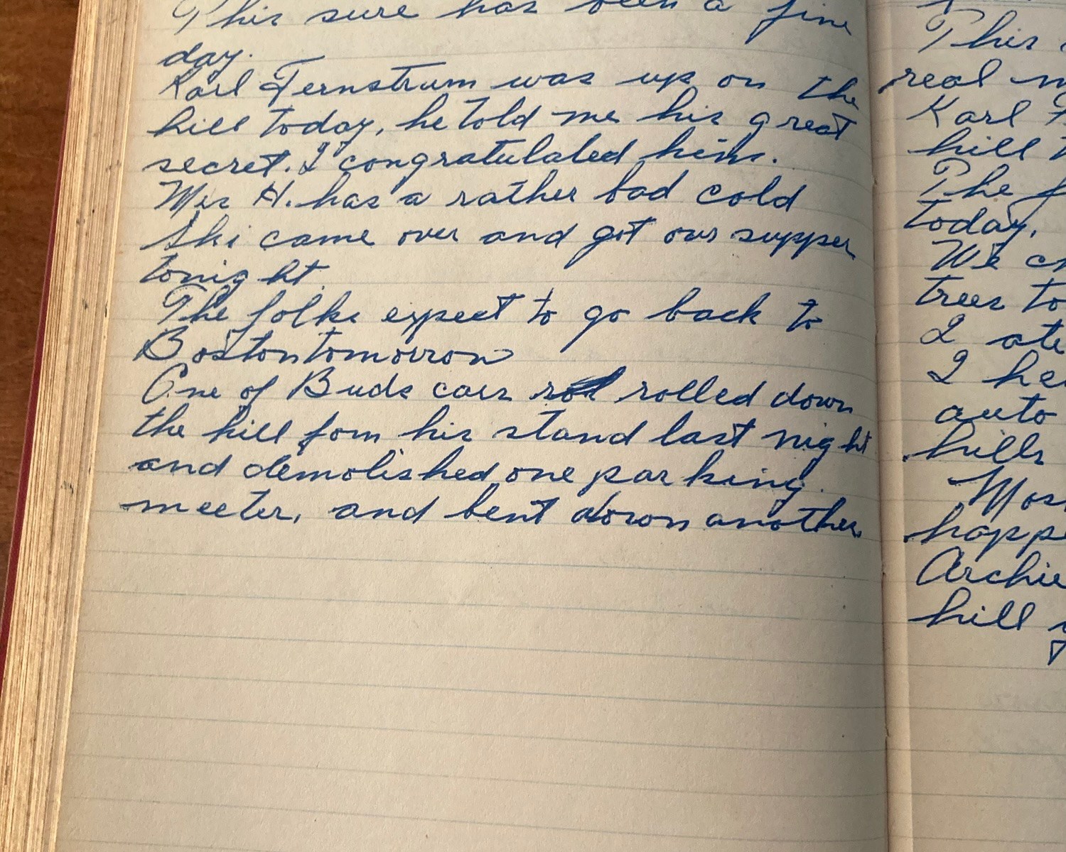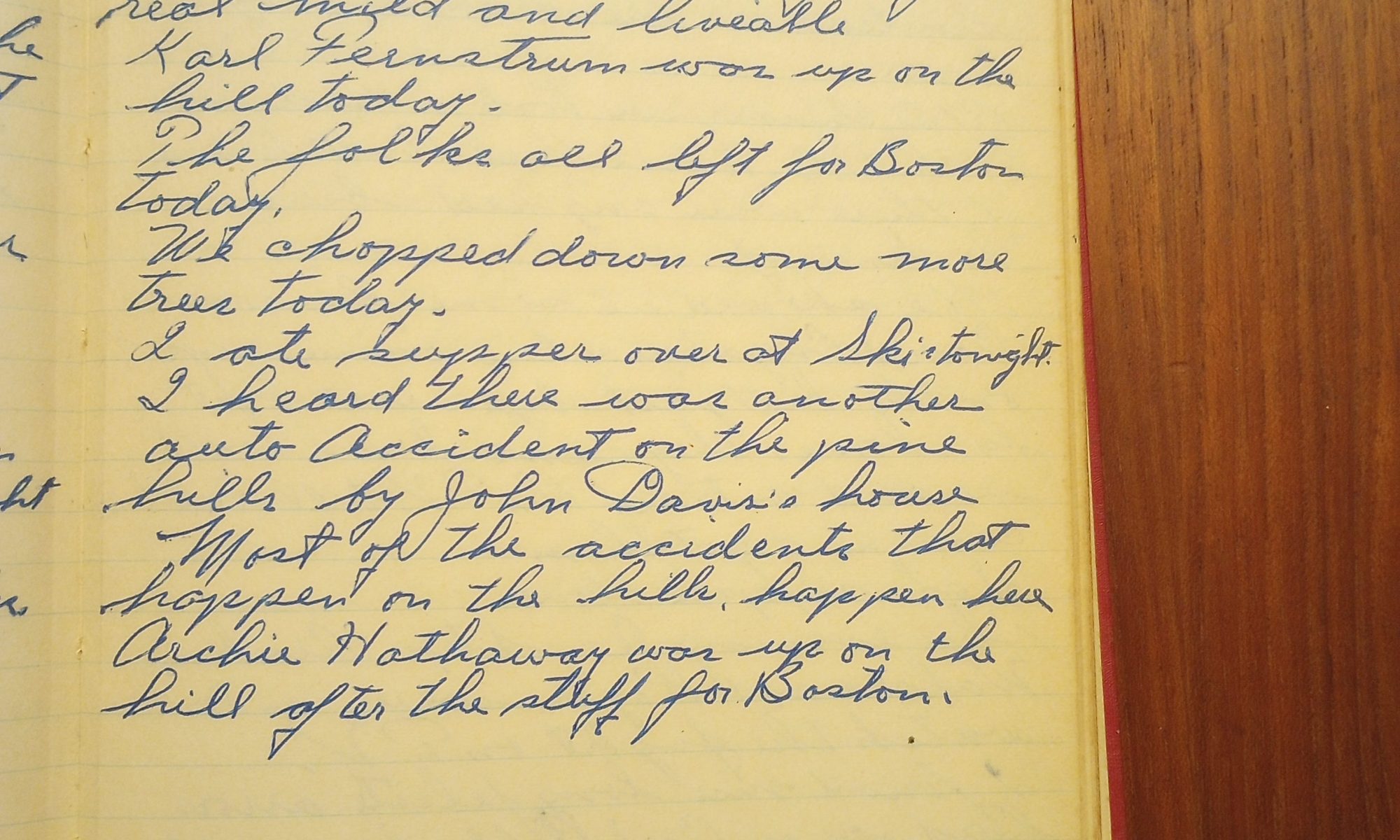 335th day- 30 days follow Fair + Warm This sure has been a fine fall. Real mild and liveable. Karl Fernstrum was up on the hill today The folks all left for Boston today. We chopped down some more trees today. Ate supper over at Ski’s tonight. I heard there was another auto accident on …