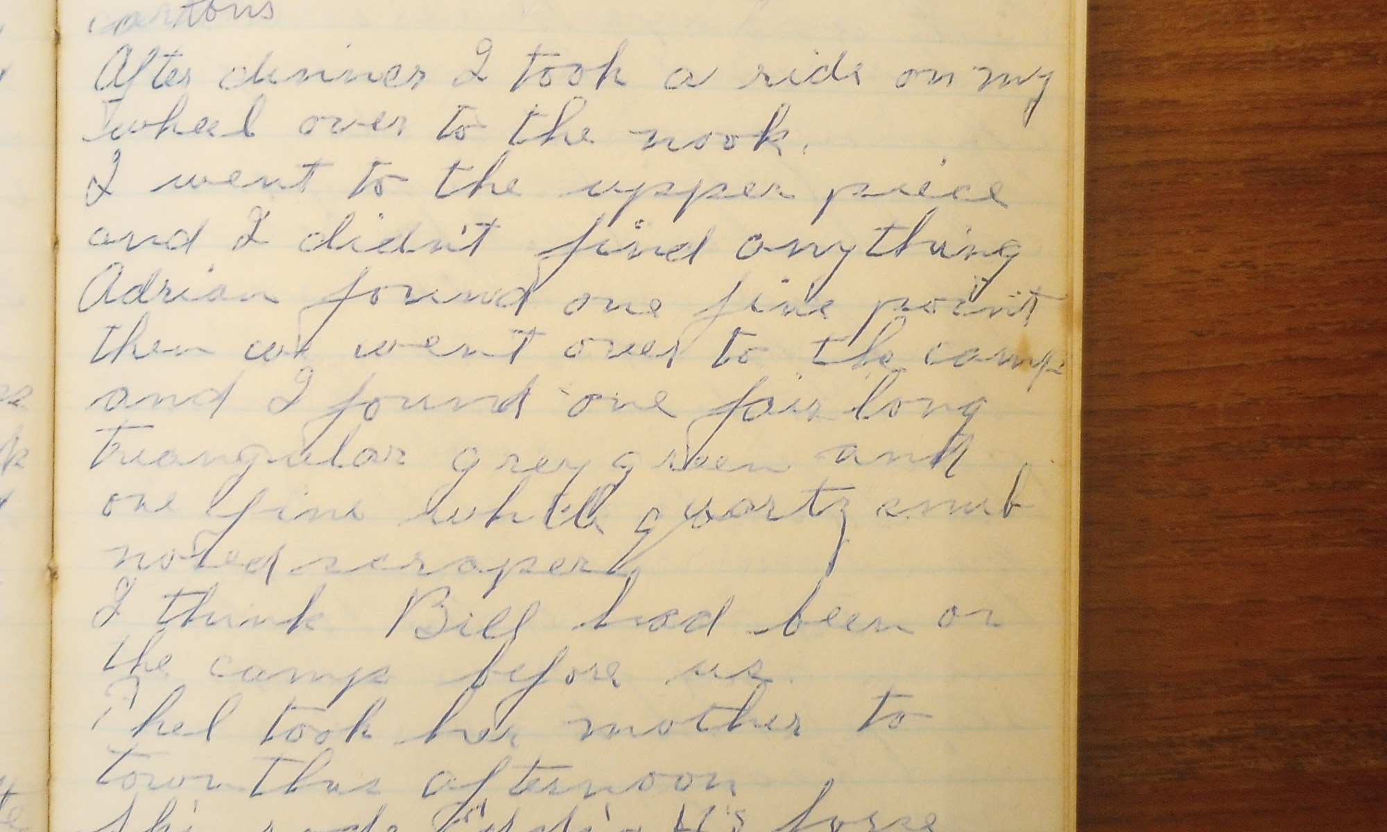 63rd day- 302 days follow (Arrowheads) Fair and cool. Archie came up on the hill this morning and got some cartons. After dinner I took a ride on my wheel over to the nook. I went to the upper piece and I didn’t find anything. Adrian found one fine point. Then we went over to …