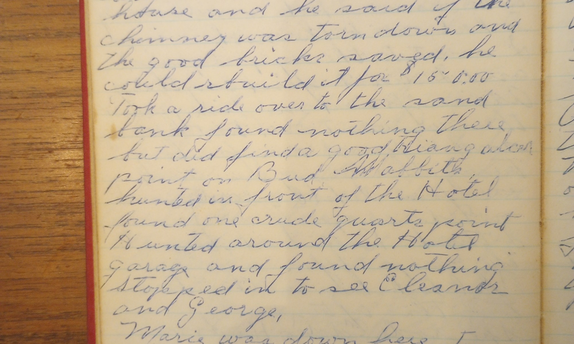 64th day- 301 days follow (Arrowheads) Fair and cool. Saw the red squirrel again today. Cotti was up to see Archie’s house and he said if the chimney was torn down and the good bricks saved, he could rebuild it for $150.00. Took a ride over to the sand bank found nothing there, but did …