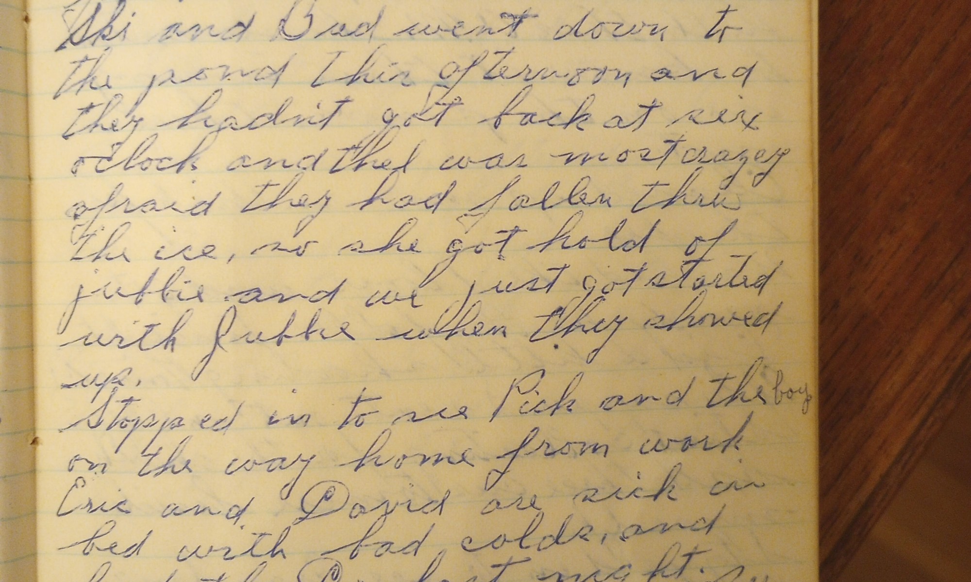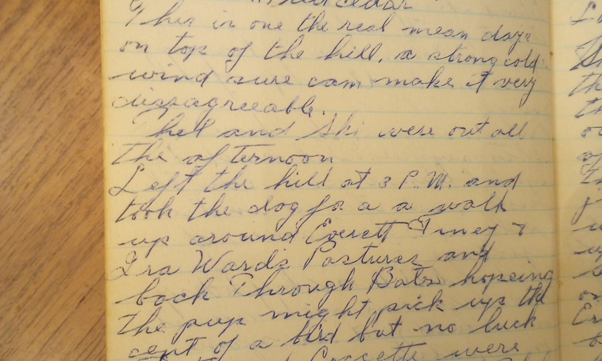 23rd day- 342 days follow Fair and warmer this morning, clouding up at noon. Lots of juncos after the bird feed. Ski and Bud went down to the pond this afternoon and they hadn’t got back at six o’clock and Thel was most crazy afraid they had fallen thru the ice, so she got hold …