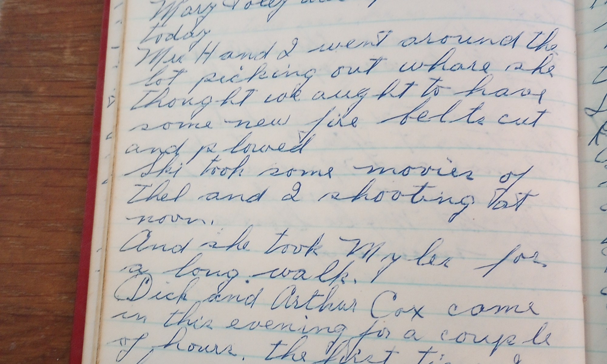 28th day- 337 days follow Mrs. H. was here till the middle of the afternoon. May Foley was up on the hill today. Mrs. H and I went around the lot picking out where she thought we ought to have some new fire belts cut and plowed. Ski took some movies of Thel and I …