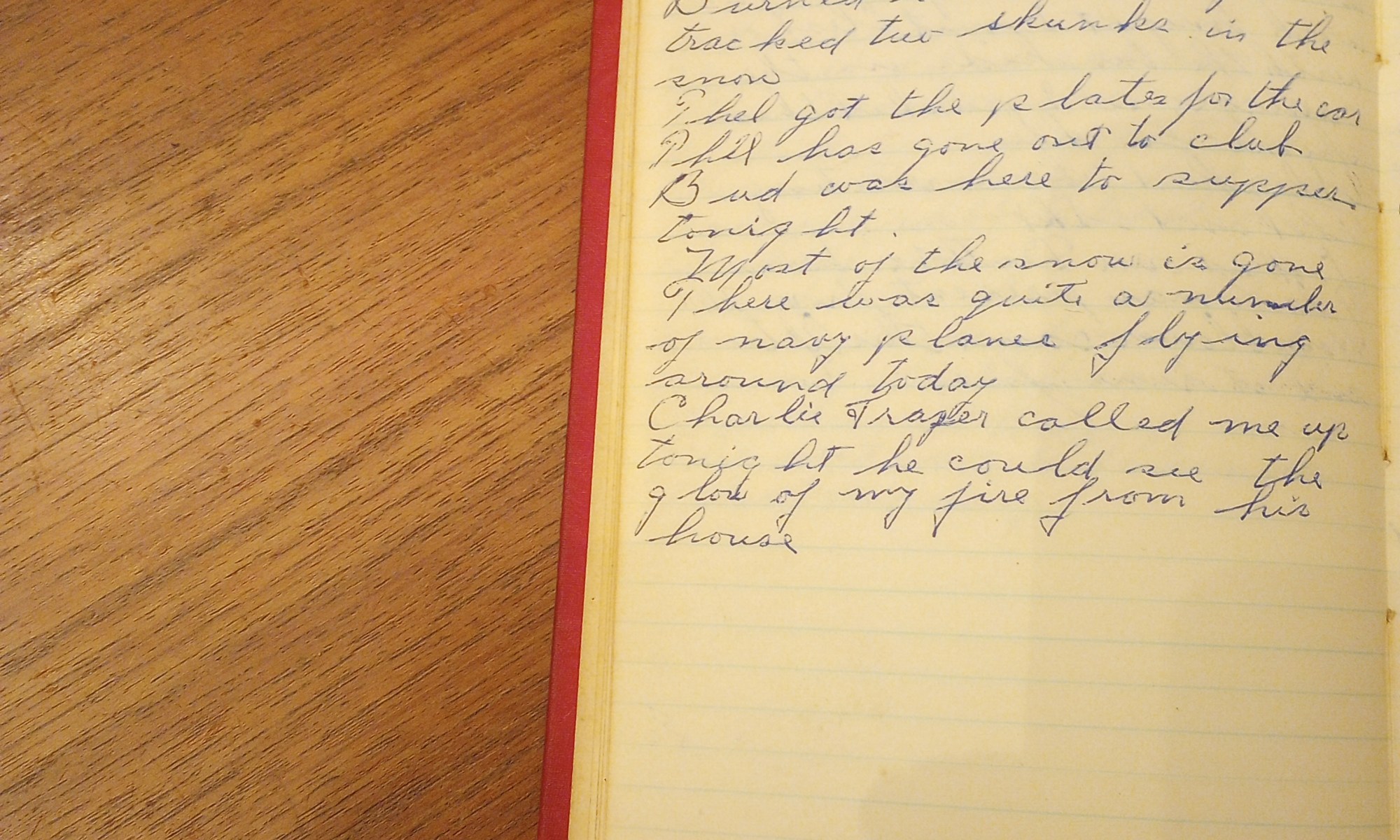 6th day- 359 days follow Epiphany Fuller Hammond There was about four inches of feathery snow on the ground this morning. Burned brush all day. Roger Maloon was up on the hill and brought up the motor he took last summer. Saw one rabbit’s track on the hill. Bud was here when I came home …