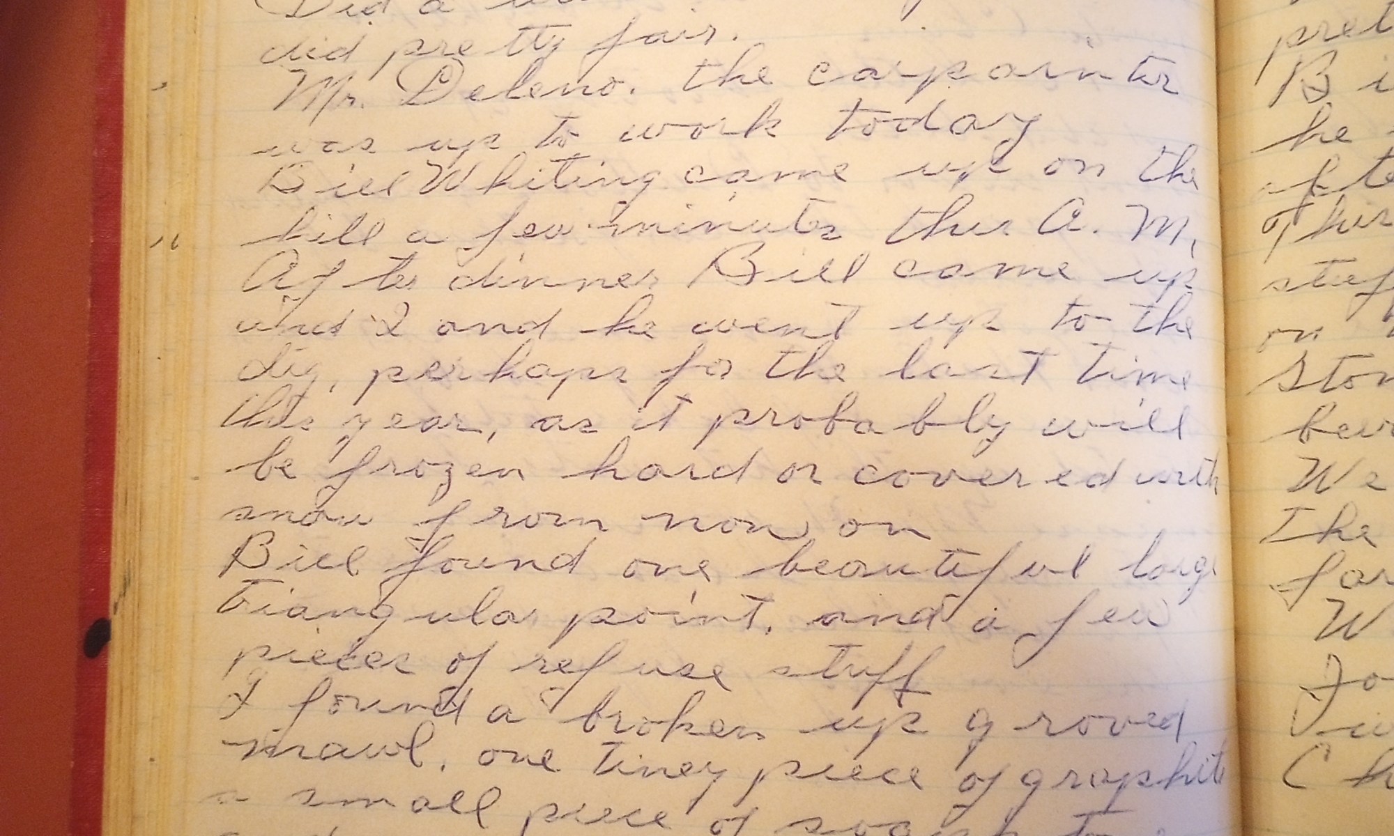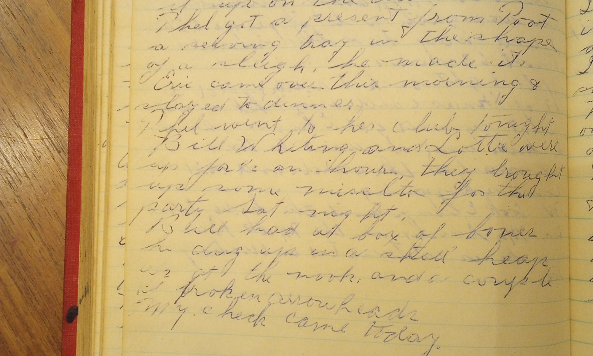 352nd day- 13 days follow Cloudy and warmer. The carpenter worked today. Hauled out brush and picked it up on the drive. Thel got a present fromToot, a serving tray in the shape of a sleigh. He made it. Eric came over this morning and stayed to dinner. Thel went to her club tonight. Bill …