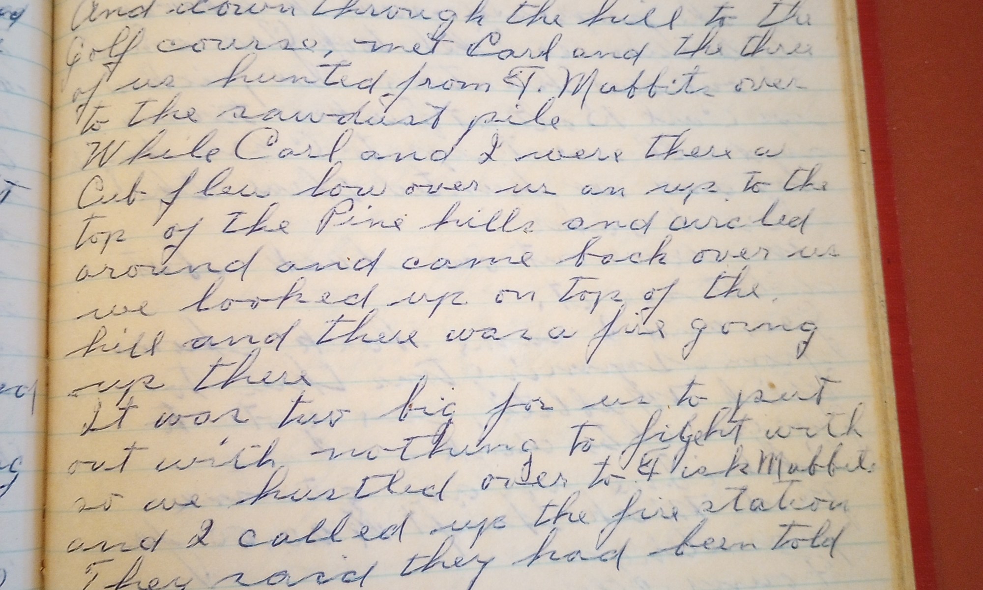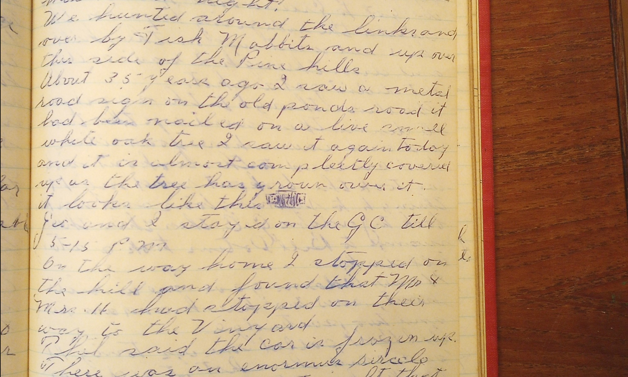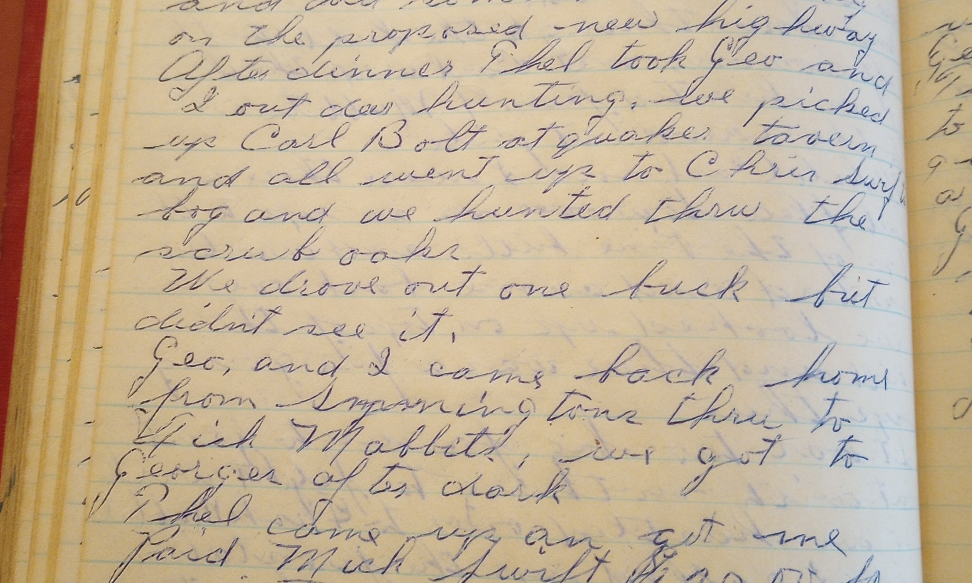 339th day- 26 days follow Thel took Geo. and I up to the Greenwood’s and we started in to hunt from there. We worked across the hills over to the surfaced road. And down through the hill to the golf course, met Carl and the three of us hunted from F. Mabbitt's over to the …