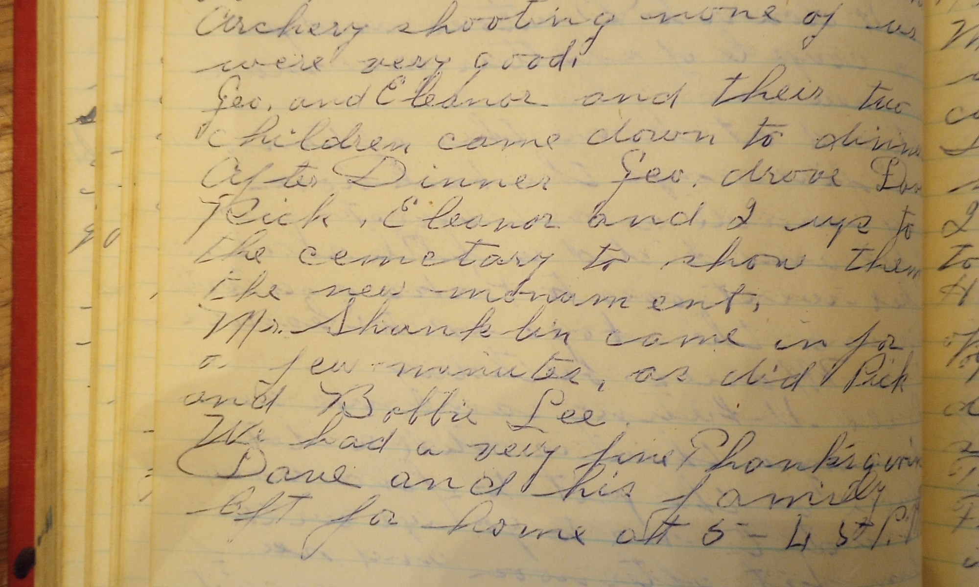 332nd day- 33 days follow Fair and cooler. Fine day. Geo came in a few minutes while we were eating breakfast. Dave, Thel, Dottie and I did some archery shooting, none of us were very good. Geo. and Eleanor and their two children came down to dinner. After dinner Geo. drove Dave, Pick, Eleanor and …