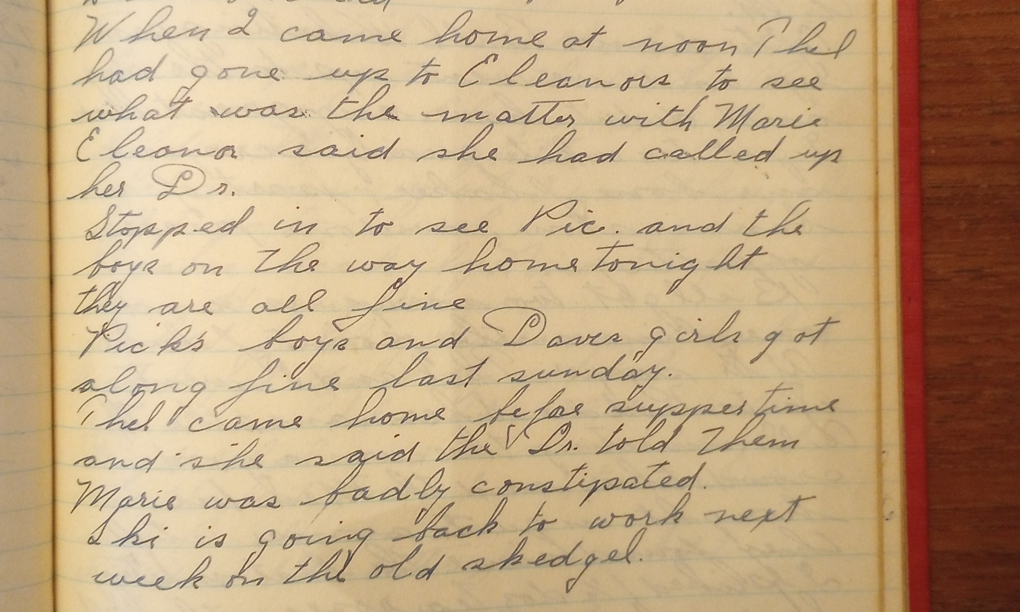 319th day- 46 days follow Cloudy and rather cold. Mary Foley was up on the hill this A.M. Worked all day dragging out brush to be burned. When I came home at noon Thel had gone up to Eleanor’s to see what was the matter with Marie. Eleanor said she had called up her Dr. …