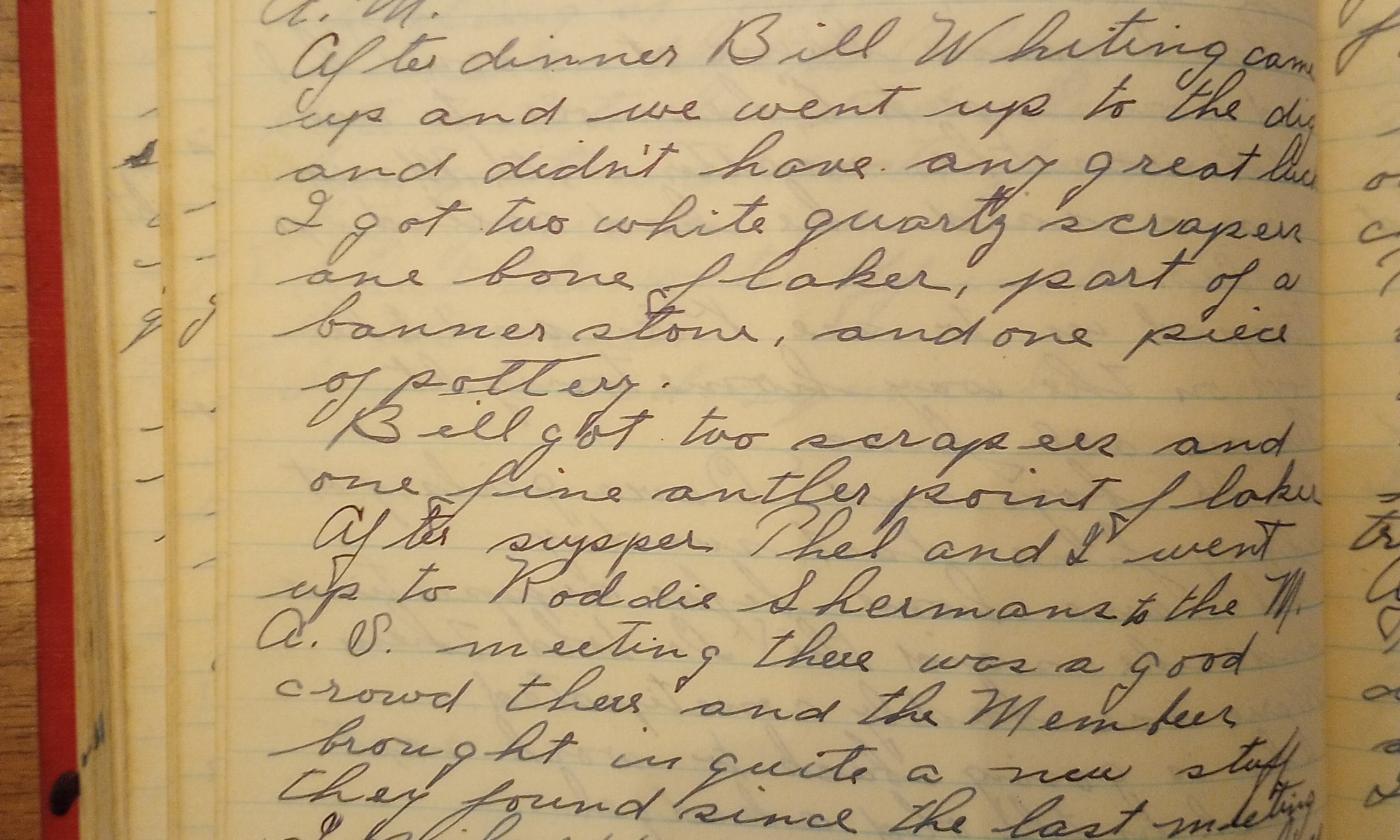 320th day- 45 days follow -Arrowheads- Fair and warm, fine day. Thel went up to see how Marie is, she is better. I put on our storm windows this A.M. After dinner Bill Whiting came up and we went up to the dig and didn’t have any great luck. I got two white quartz scrapers, …