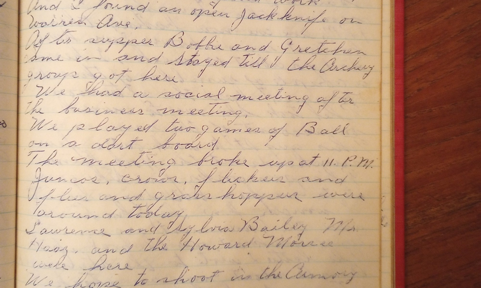 325th day- 40 days follow Fair and warm. Worked most of the day cleaning out the barn. Stopped in to see Pick and the boys on my way home from work. And I found an open jackknife on Warren Avenue. After supper Bobbie and Gretchen came in and stayed till the archery group got here. …