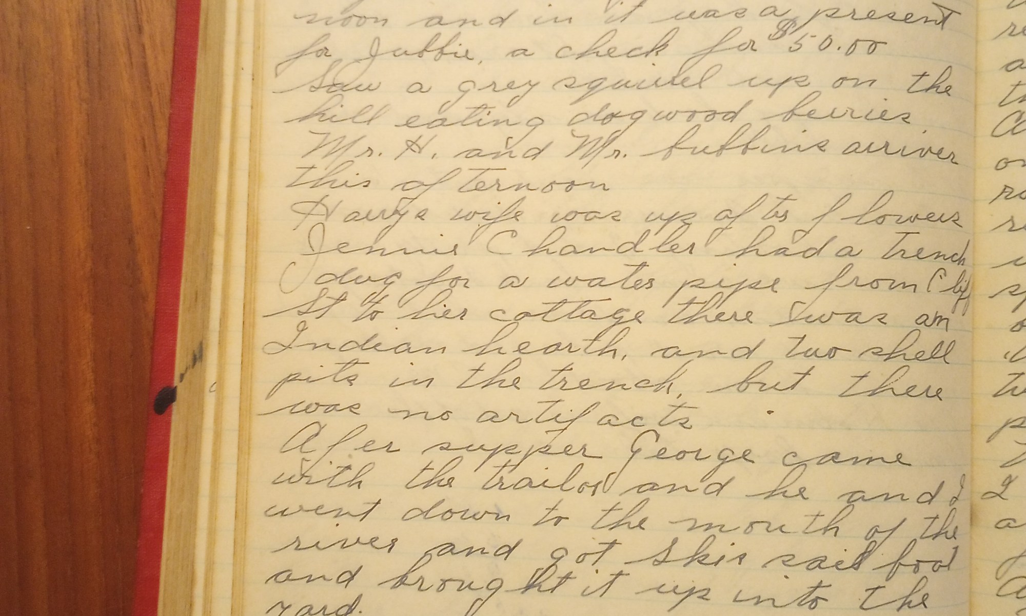 270th day- 95 days follow Fair and cooler fine day. Mary Foley was up on the hill this A.M. Mowed the lawns. There was a heavy stand of grass. I got a letter from the Boss at noon and in it was a present for Jubbie, a check for $50.00. Saw a grey squirrel up …