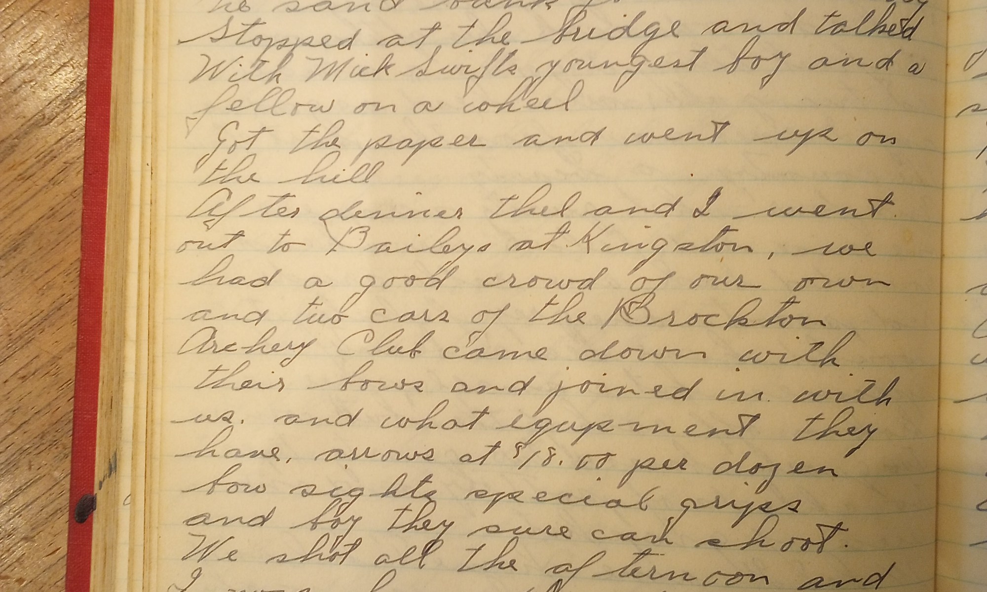 269th day- 96 days follow Thel and I went down to the camp today. We went down this morning and I went out and trolled for awhile before dinner, didn’t get a strike. After dinner Thel and I did some shooting. We broke one arrow. I went fishing an hour in the afternoon and caught …