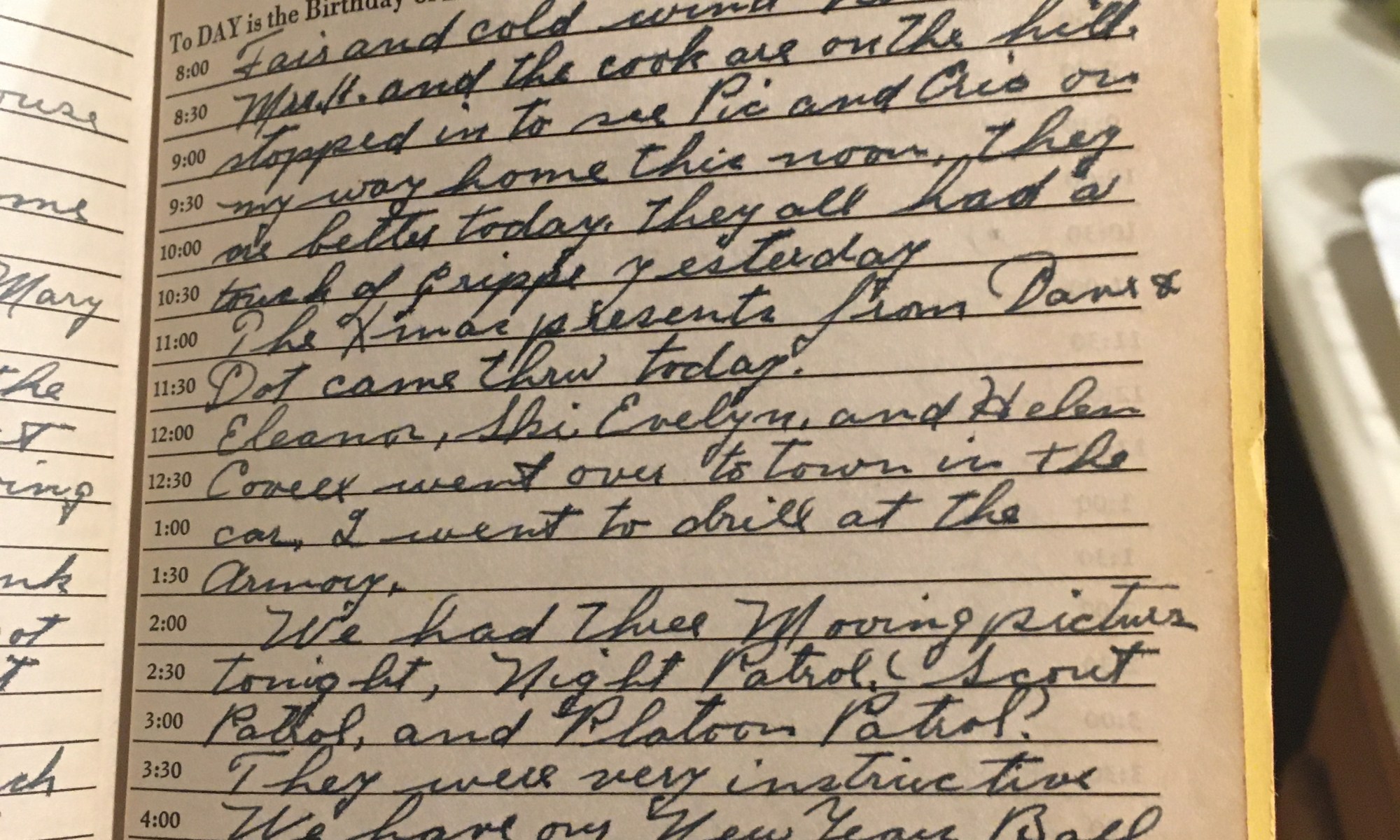 ToDay is the Birthday of Fair and mild, wind No. Arthur came up on the hill and got my rubbish. Cozette came over with a present she got from Eddie. Thel, Ski, Eleanor and I went to town and I went to the Armory to drill. We got awarded service ribbons tonight. Came home as …