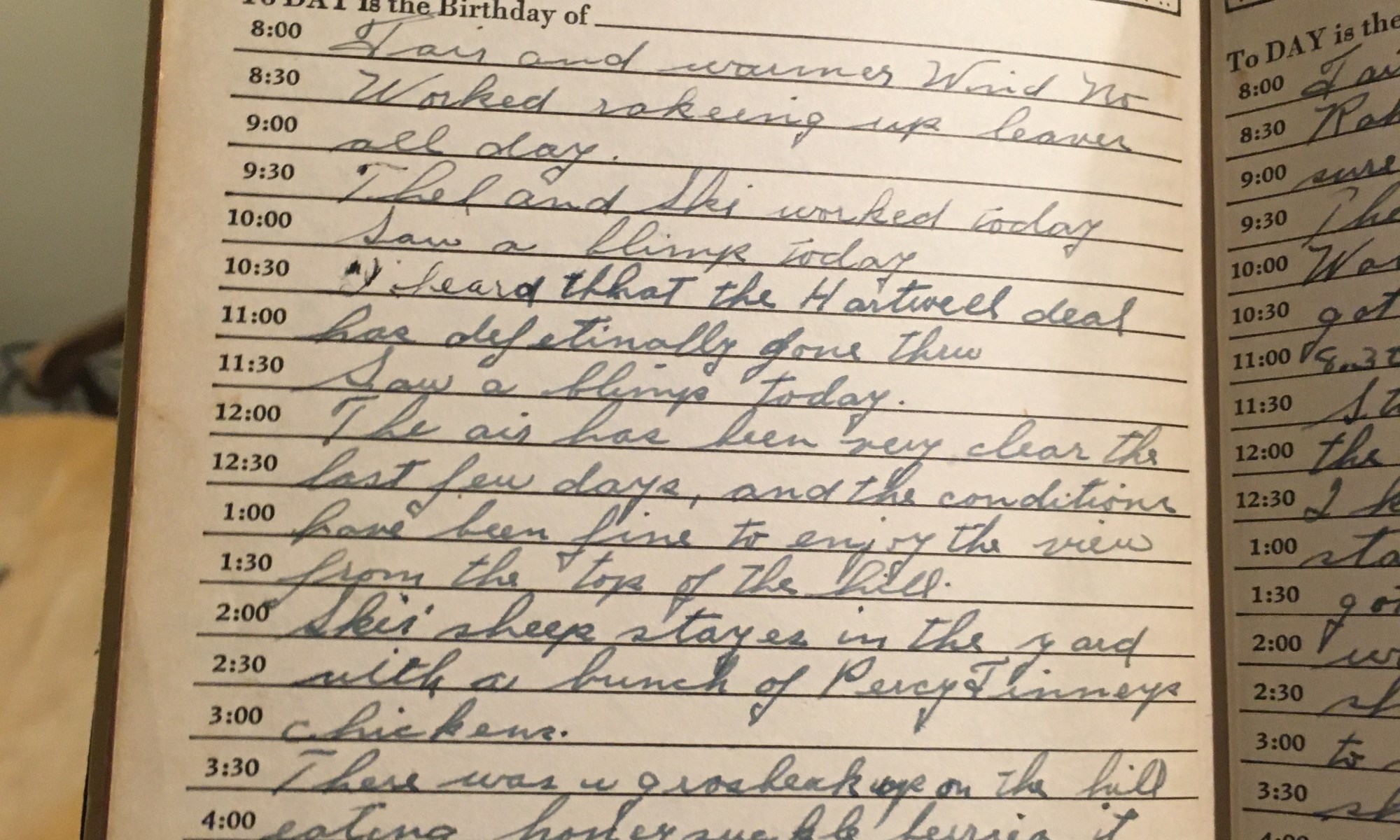 ToDay is the Birthday of Fair and warmer, Wind No. Worked raking up leaves all day. Thel and Ski worked today. Saw a blimp today. I heard that the Hartwell deal has definitively gone through. Saw a blimp today. The air has been very clear the last few days, and the conditions have been fine …