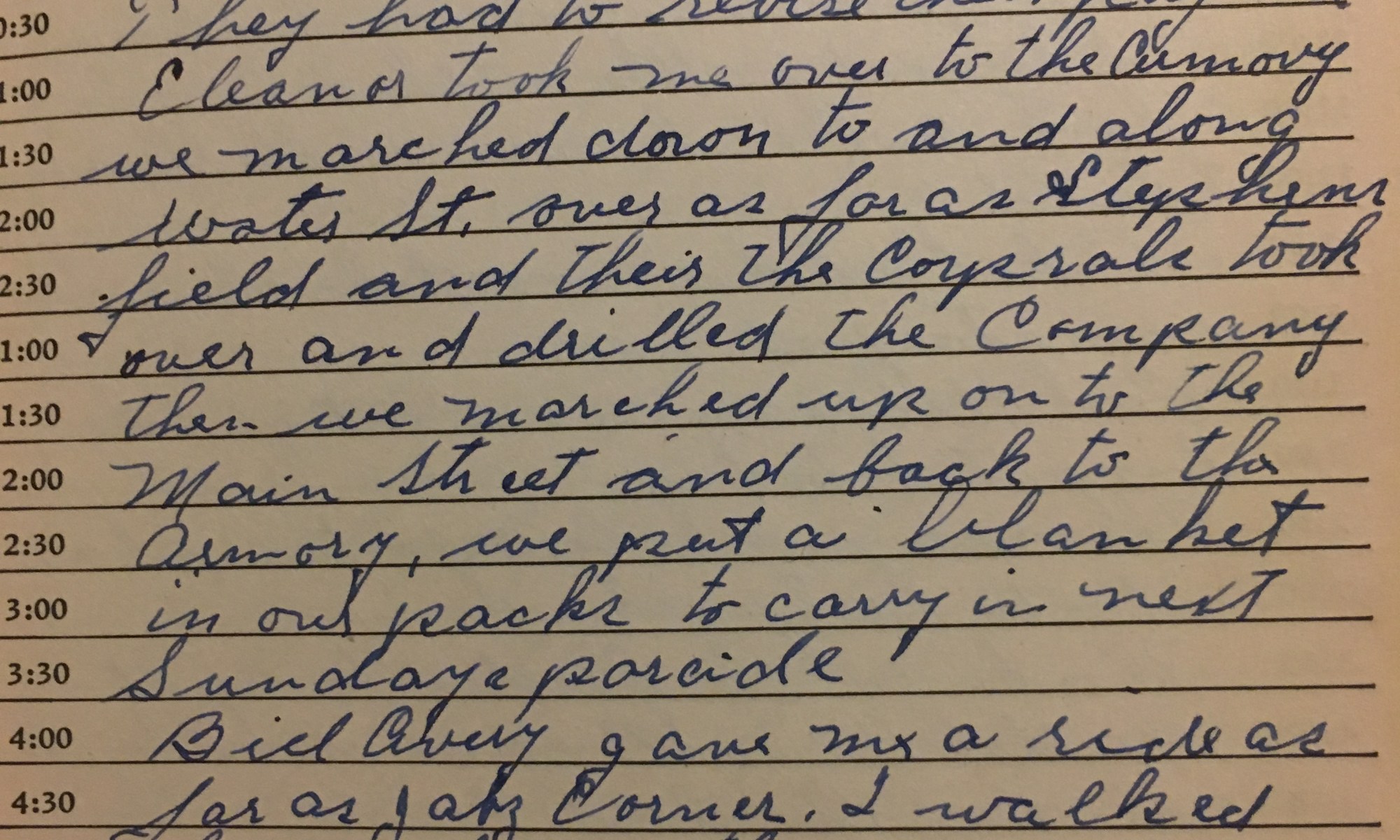 ToDay is the Birthday of Fair and warm, wind So. Put top dressing on the pool lawn. Eleanor worked at Mabbit's office from 8 a.m. Yesterday morning. They had to revise their payroll. Eleanor took me over to the Armory. We marched down to and along Water St, over as far as Stephen's Field, and …