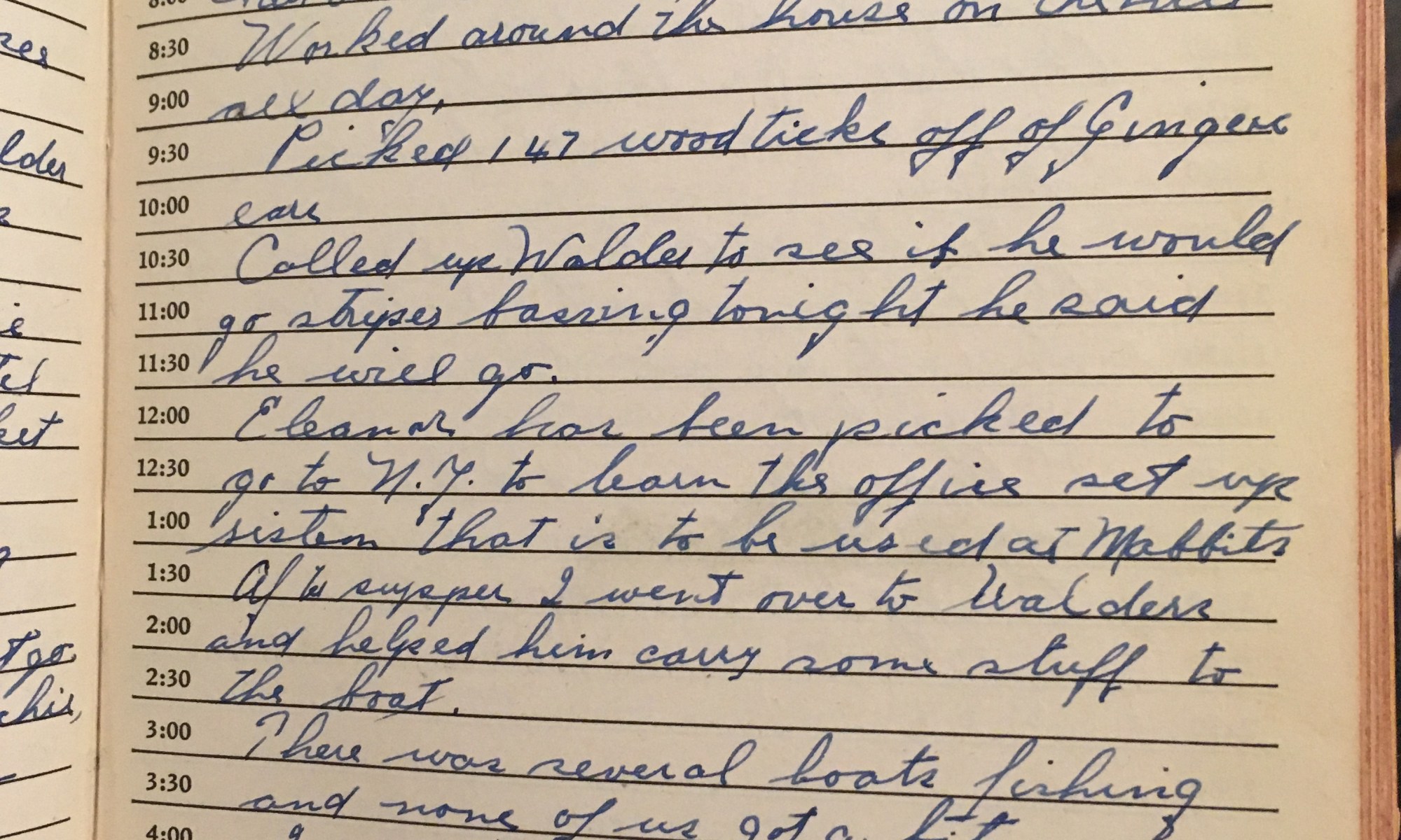 ToDay is the Birthday of Paid $33.31 Income Tax Fair and cool today, wind no. Worked around the house on the hill all day. Picked 147 wood ticks off of Ginger. Called up Walder to see if he would go striped bassing tonight, he said he will go. Eleanor has been picked to go to …