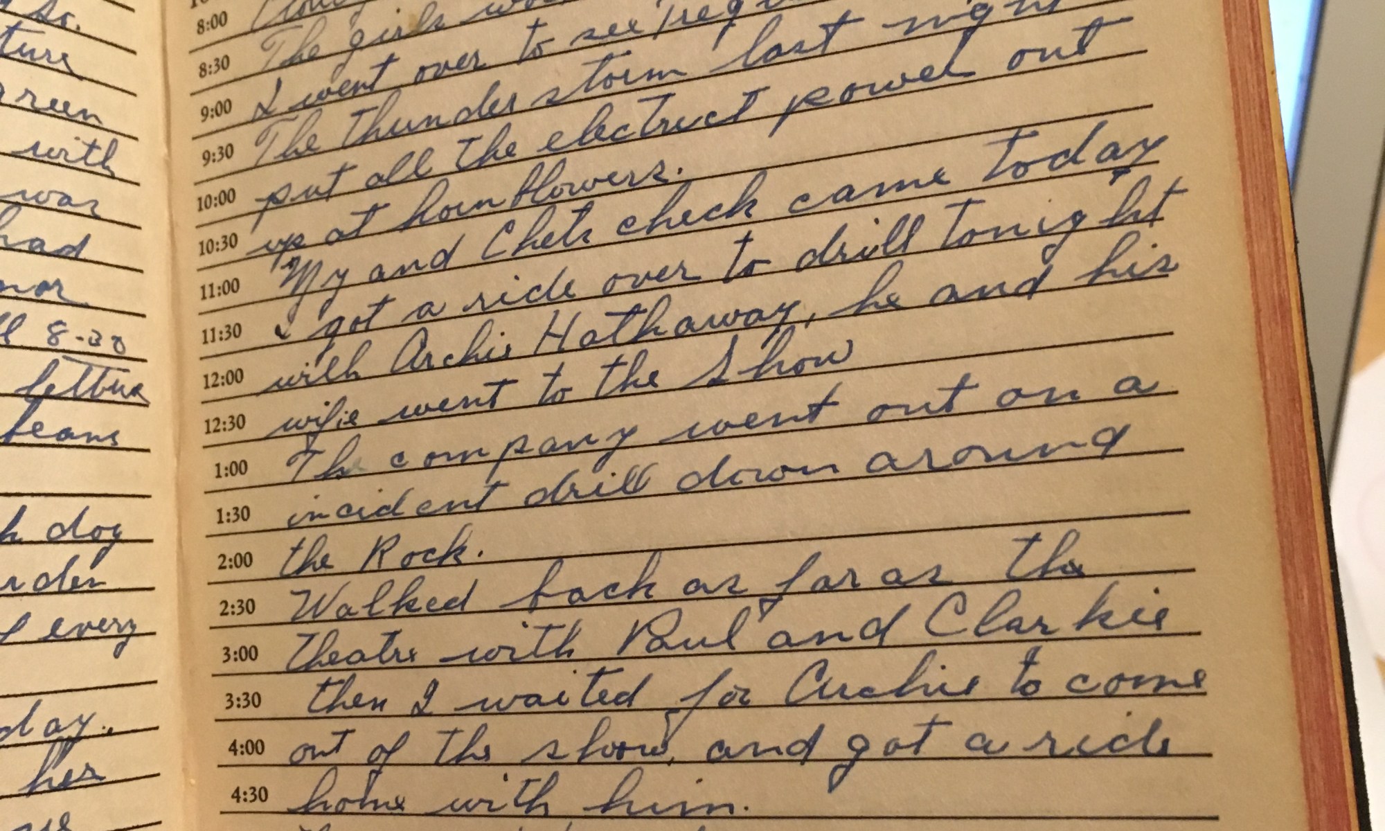 ToDay is the Birthday of Cloudy and warm wind No. The girls walked up on the hill. I went over to see Treglawn. The thunderstorm last night put all the electrical power out up at Hornblower's. My and Chet's check came today. I got a ride over to drill tonight with Archie Hathaway, he and …