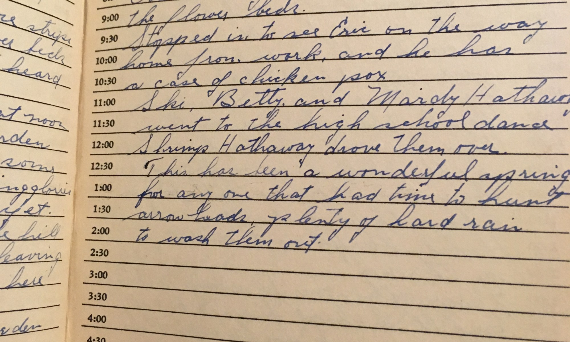 ToDay is the Birthday of Rained all day. Cold, wind East. Chet and I finished up edging the flower beds. Stopped in to see Eric on the way home from work and he has a case of chicken pox. Ski, Betty, and Marty Hathaway went to the high school dance. Shrimp Hathaway drove them over. …