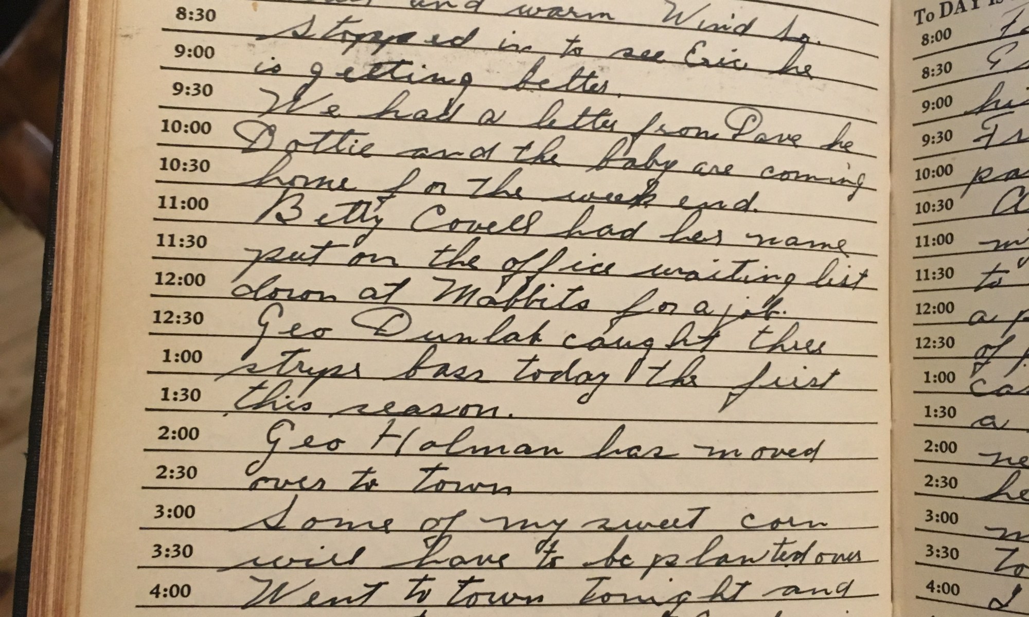 ToDay is the Birthday of Fair and warm, wind So. Stopped in to see Eric. He is getting better. We had a letter from Dave, he, Dottie, and the baby are coming for for the weekend. Betty Covell had her name put on the office waiting list down at Mabbits for a job. Geo Dunlak …