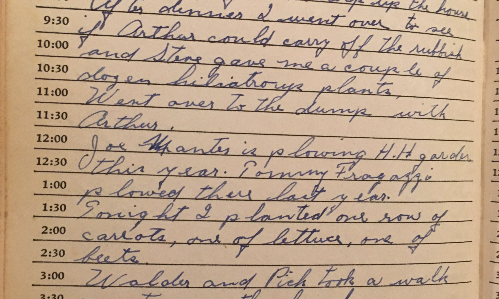 ToDay is the Birthday of 23rd year at my job Fired up all the fireplaces and stoves, and first swept up the house. After dinner I went over to see if Arthur could carry off all the rubbish and Steve gave me a couple of dozen heliotrope plants. Went over to the dump with Arthur. …
