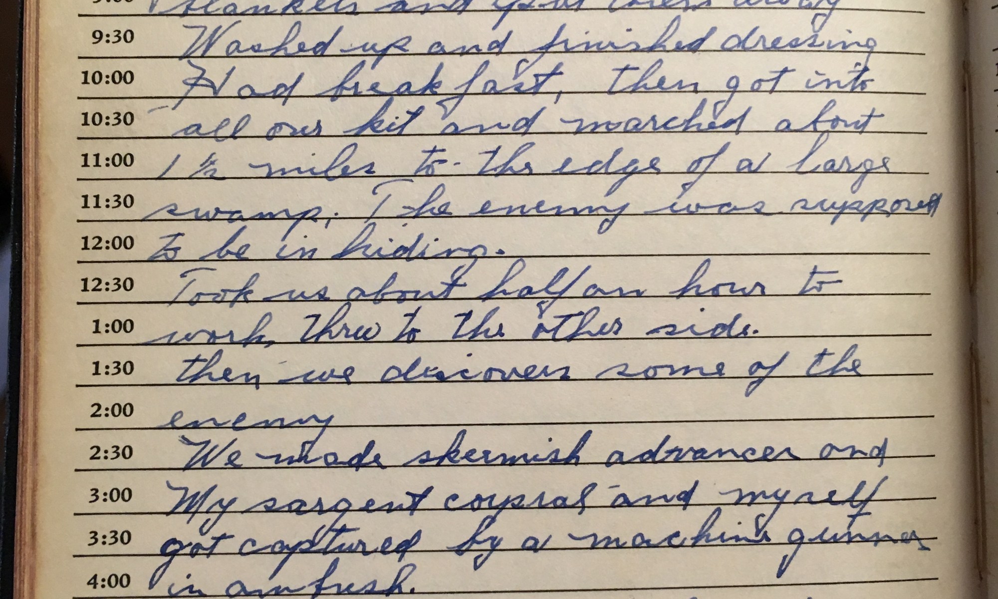 ToDay is the Birthday of Fair and cold, wind N.W. Got up at 5 am, folded cots and blankets and put them away. Washed up and finished dressing. Had breakfast, then got into all our kit and marched about 1½ miles to the edge of a large swamp. The enemy was supposed to be in …
