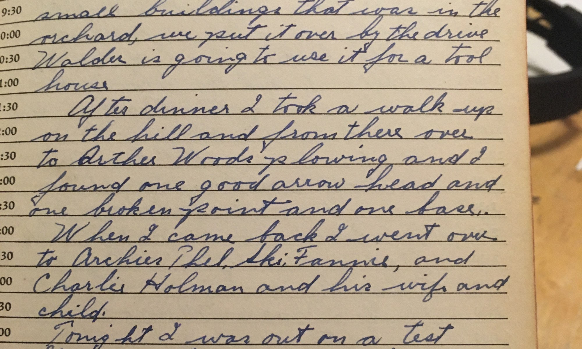 ToDay is the Birthday of Robert H. Lee Cool fair east wind. Raked all day After I quit work I took a walk over by Ames Nickerson's bog and I found one nice triangular arrowhead. Then I went across the road to Huck Davis' garden and found a nice stemmed on there. Milt Vaughn was …