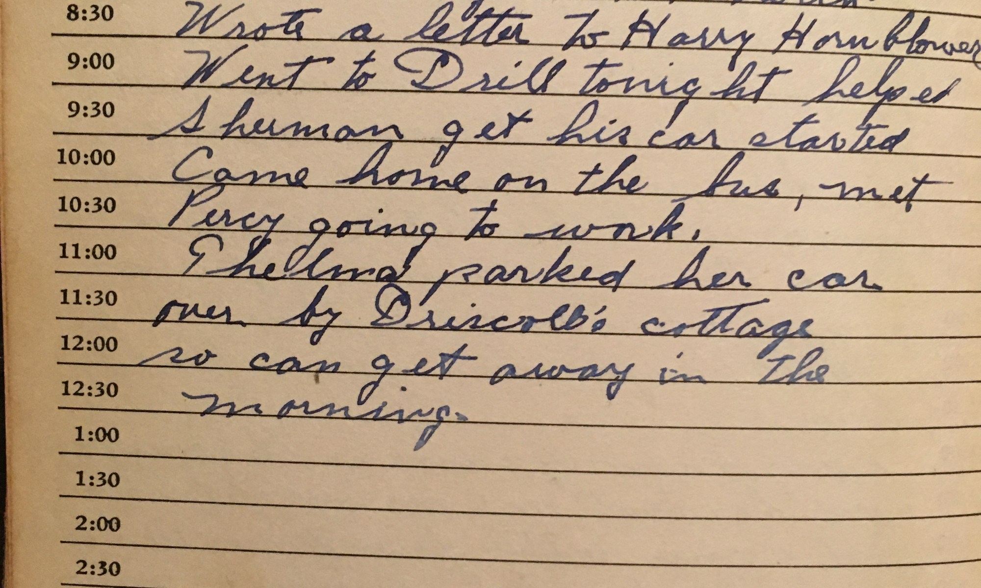 ToDay is the Birthday of ___________ Snow all day, wind north. Wrote a letter to Harry Hornblower. Went to Drill tonight, helped Shuman get his car started. Came home on the bus, met Percy going to work. Thelma parked her car over by Driscoll's cottage so can get away in the morning. “Education is the …