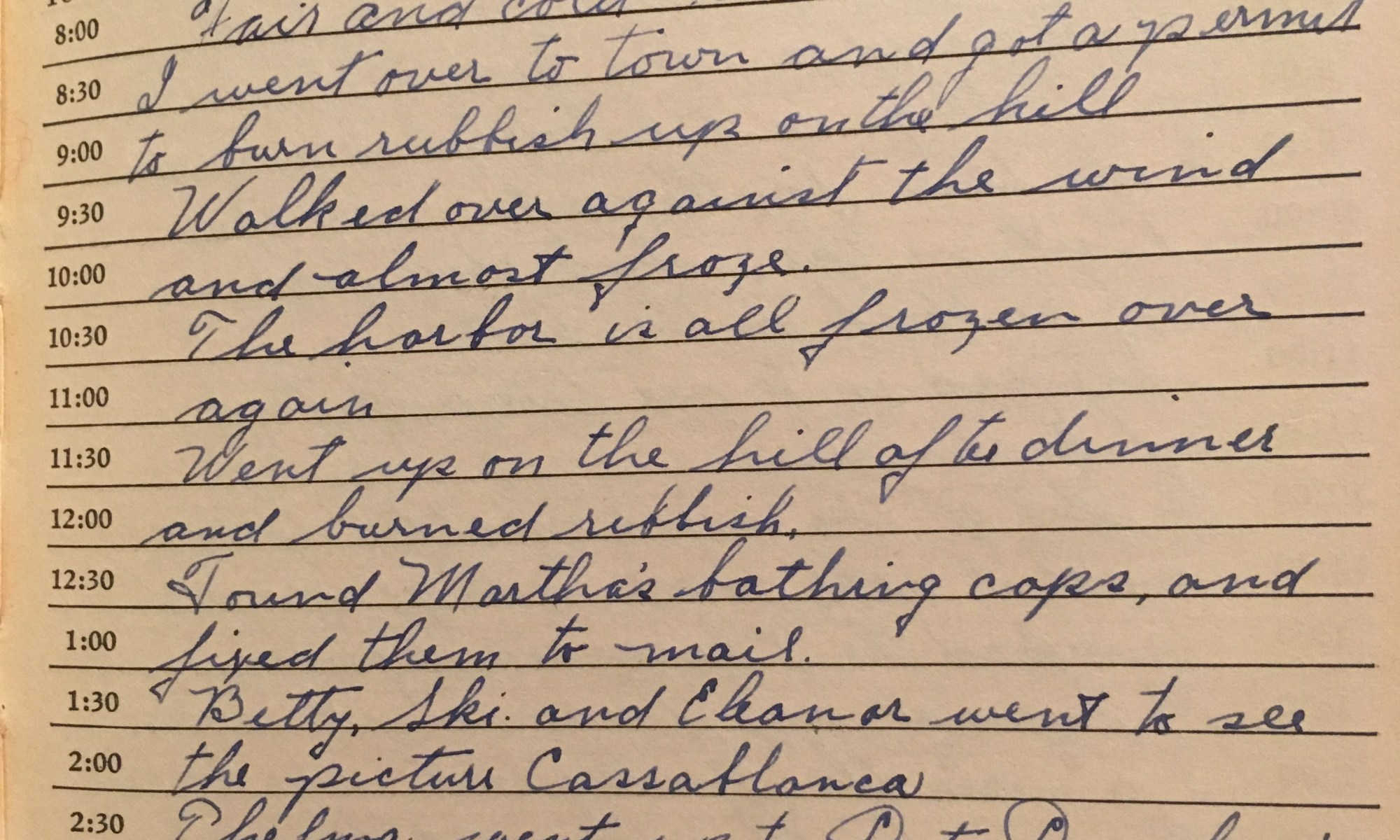 ToDay is the Birthday of ___________ Fair and cold. 0. Wind N.W. I went over to town and got a permit to burn rubbish up on the hill. Walked over against the wind and almost froze. The harbor is all frozen over again. Went up on the hill after dinner and burned rubbish. Found Martha's …