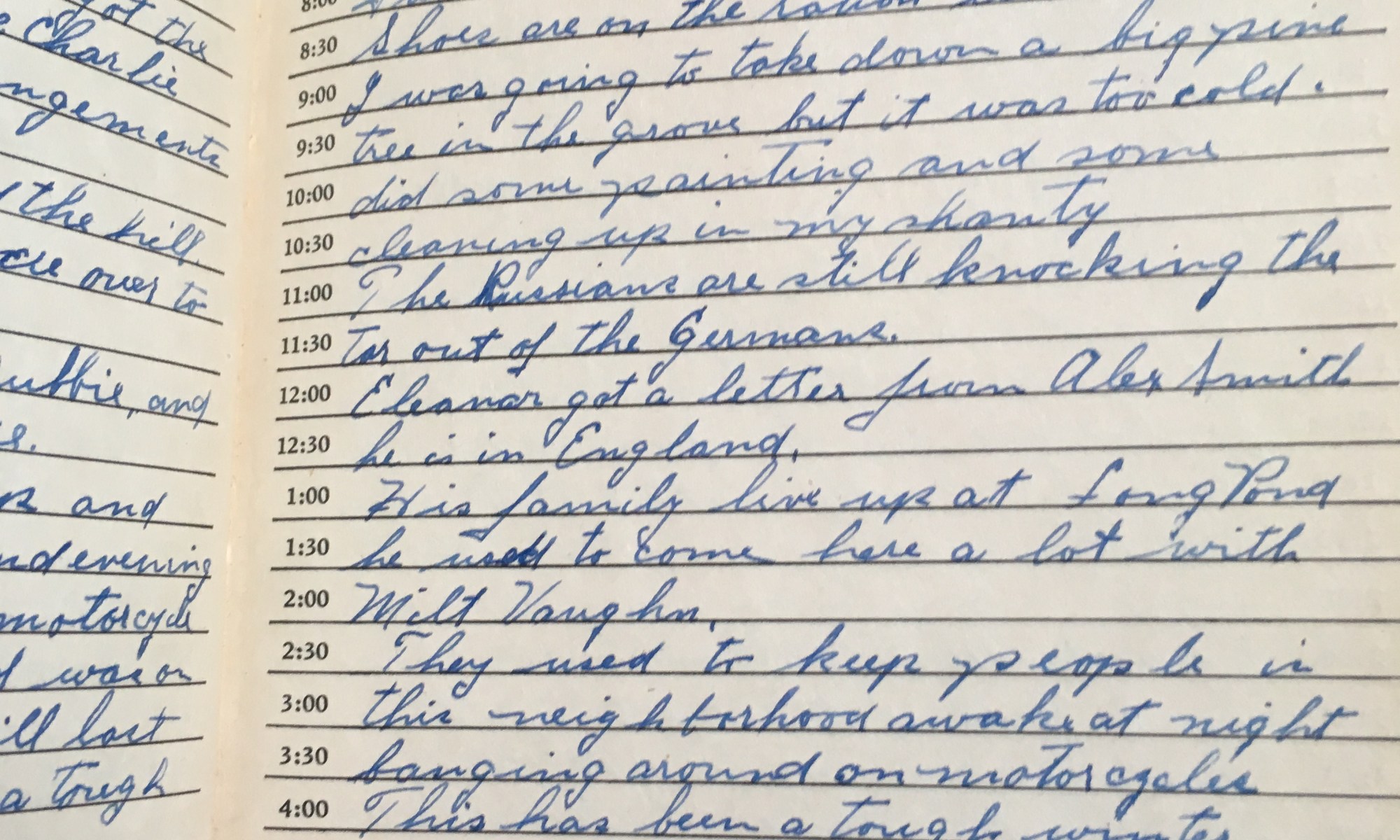 ToDay is the Birthday of ___________ Fair and cool, wind North West. Shoes are on the ration list now. I was going to take down a big pine tree in the grove but it was too cold. Did some painting and some cleaning up in my shanty. The Russians are still knocking the tar out …