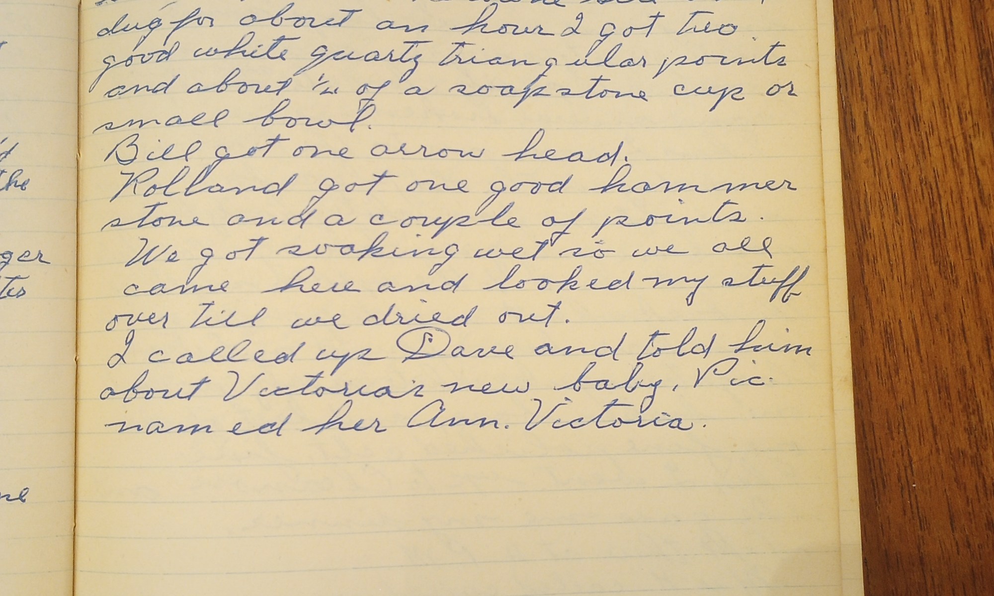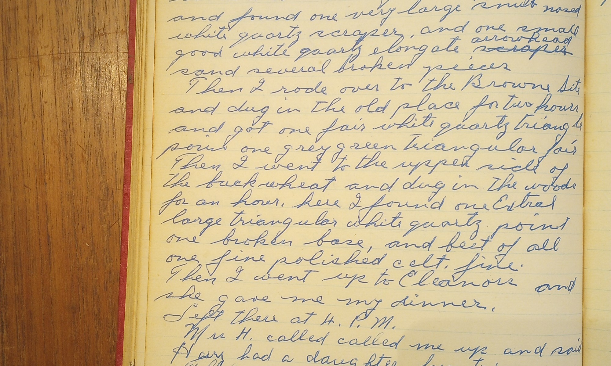 158th day- 208 days follow (Arrowheads) Harry has a new daughter Fair + Warm This is the first real summer day we have had this season. I started out at 8 A.M. and rode my bike up to Bubbins’. Saw Mrs. Bubbins. Hunted their land for a couple of hours and found one very large …